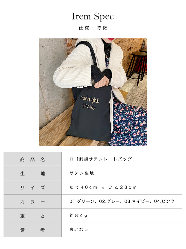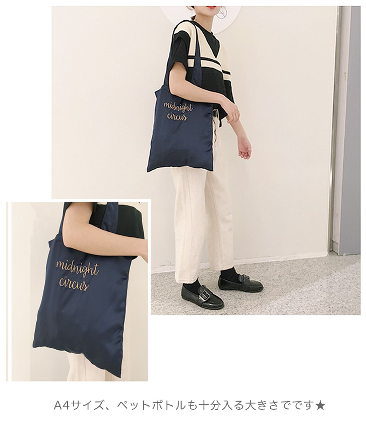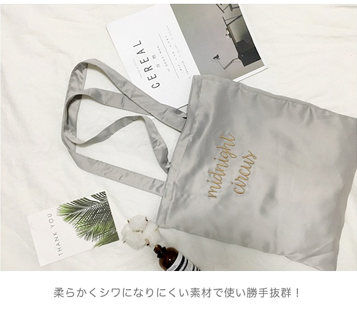 バッグ トートバッグ レディース サテントートバッグ 肩掛け 肩掛けバッグ サテン素材 光沢 つやつや シンプル 英字ロゴ 刺繍ロゴ 軽量 レジバッグ 折りたためる エコバッグ 大人かわいい おしゃれ シワになりにくい A4収納可能 カラー豊富