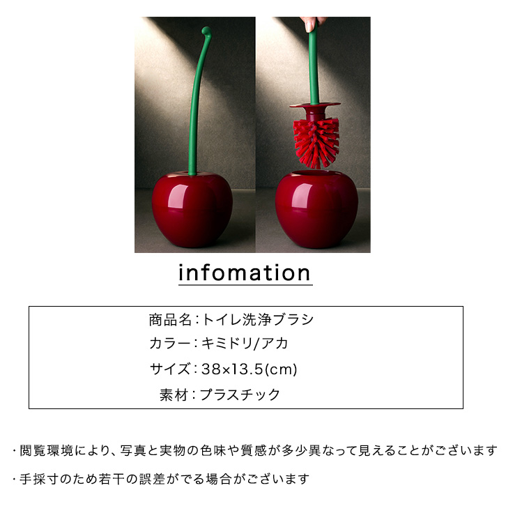 トイレブラシ トイレ洗浄ブラシ ブラシ さくらんぼ型 可愛い キュート おしゃれ インテリア 洗浄ブラシ トイレ用品 お掃除 トイレ掃除 チェリー サクランボ風 オシャレ 掃除用品 掃除 トイレ用ブラシ 赤 黄緑360度植毛ブラシ