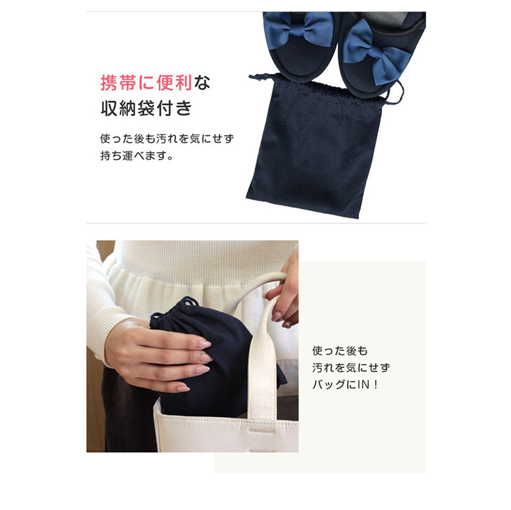 スリッパ 携帯スリッパ ルームシューズ 携帯用スリッパ 折りたたみ式携帯スリッパ 折りたたみ 持ち運び便利 旅行 専用ポーチ付き コンパクト収納 専用袋 参観日 出張 機内 学校訪問 リボンシューズ 可愛い おしゃれ