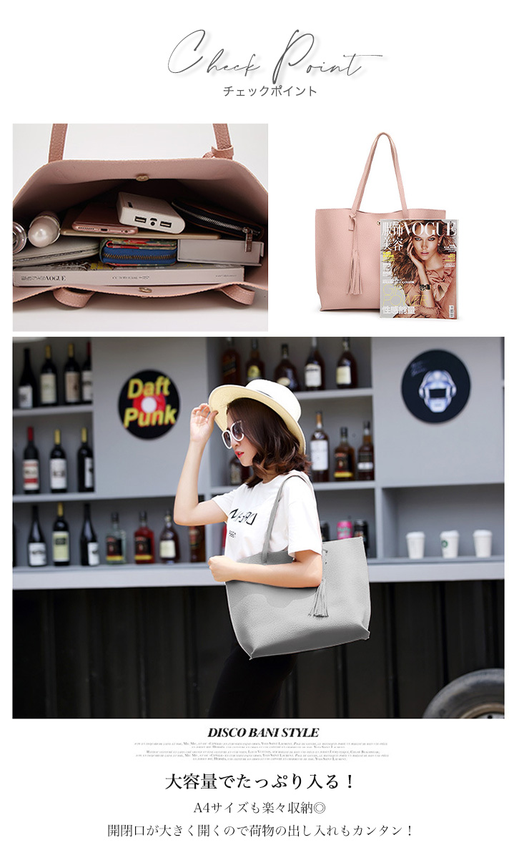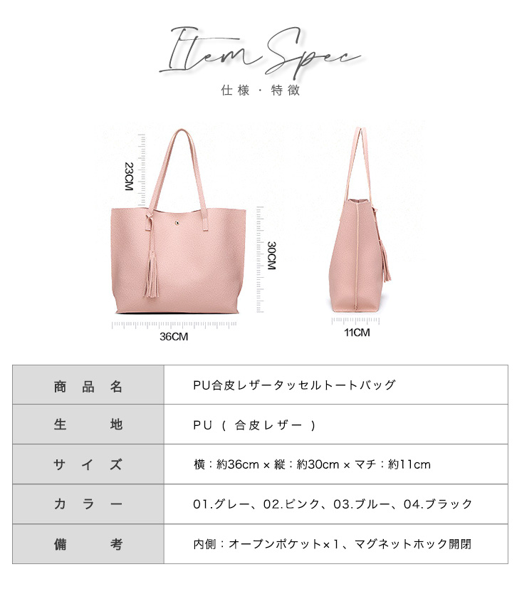 バッグ トートバッグ レディースバッグ レディーストートバッグ シンプル 大容量 収納力抜群 タッセル付き タッセル A4収納可能 通勤 通学 デイリー 無地 スナップボタン開閉 オールシーズン 使いやすい ブルー グレー ピンク ブラック