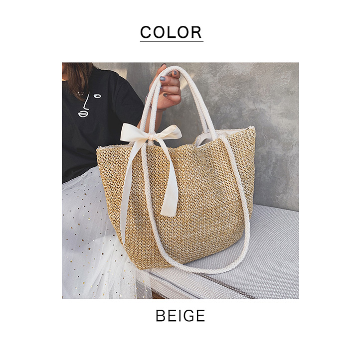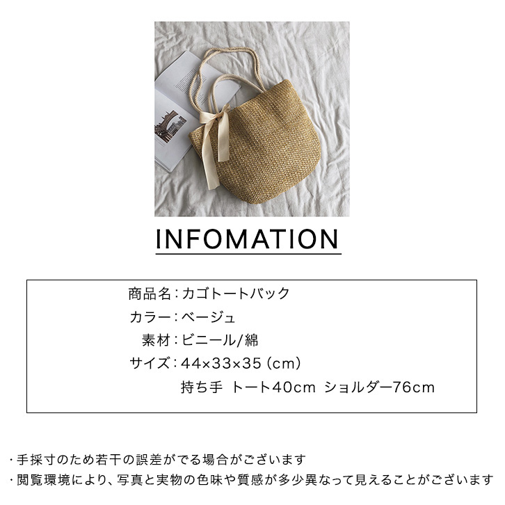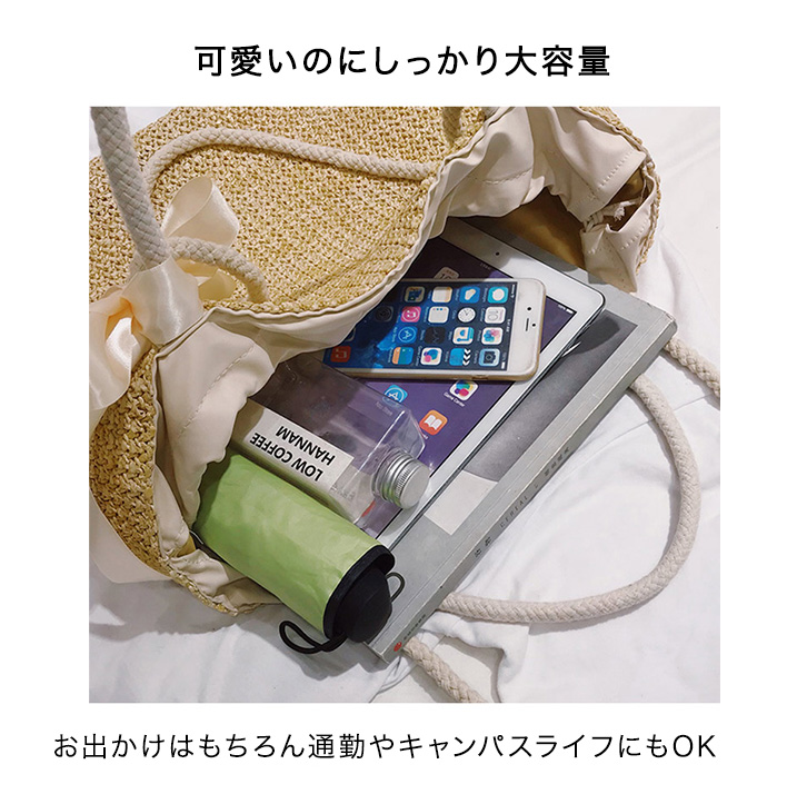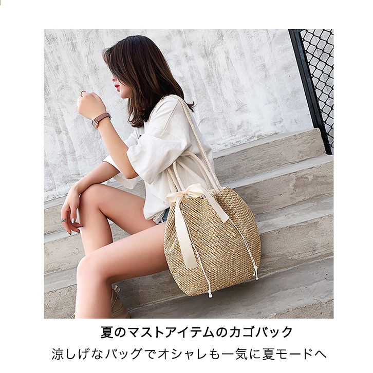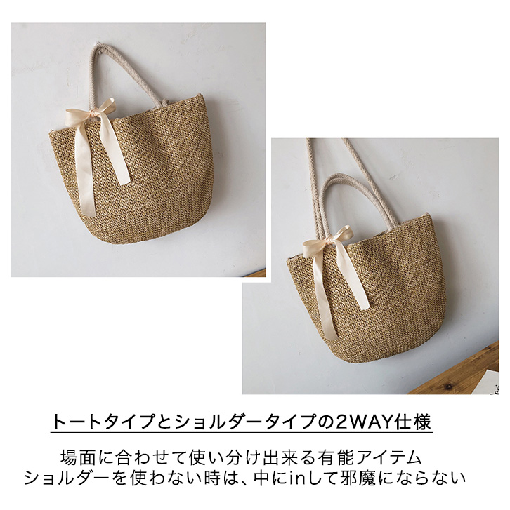 トートバッグ バッグ かごバッグ 2way ショルダーバッグ ハンドバッグ 夏 カゴバッグ リボン 可愛い おしゃれ デイリー マリンテイスト 大人カジュアル 大容量 収納力抜群 デイリー 通勤 通学 ベージュ 大人かわいい