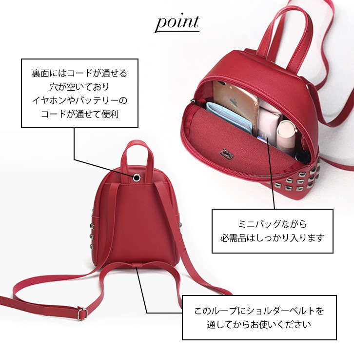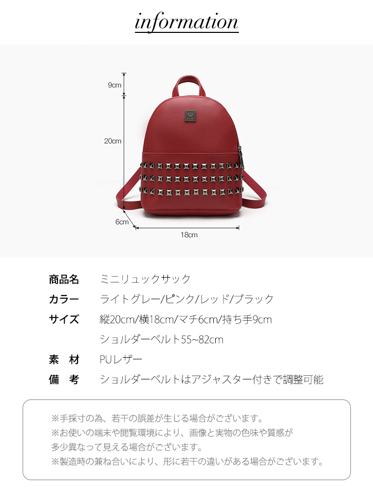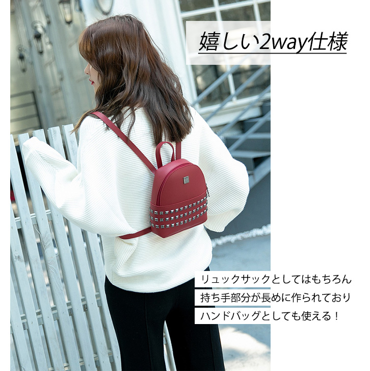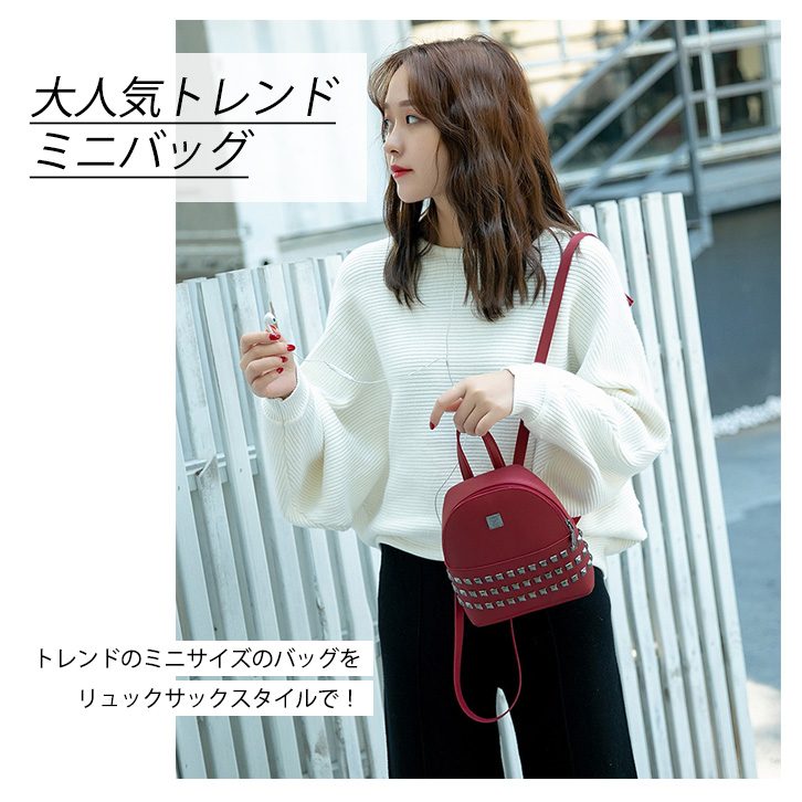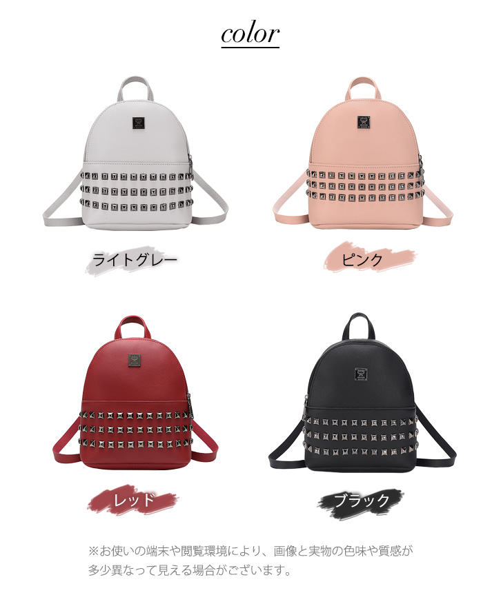 リュック バックパック ミニリュック レディースリュック ミニサイズ コンパクト レディース スタッズ スタッズ付き オシャレ トレンド ショルダー長さ調節可能 デイリー使い カラー豊富 デイリー レッド ピンク ライトグレー ブラック