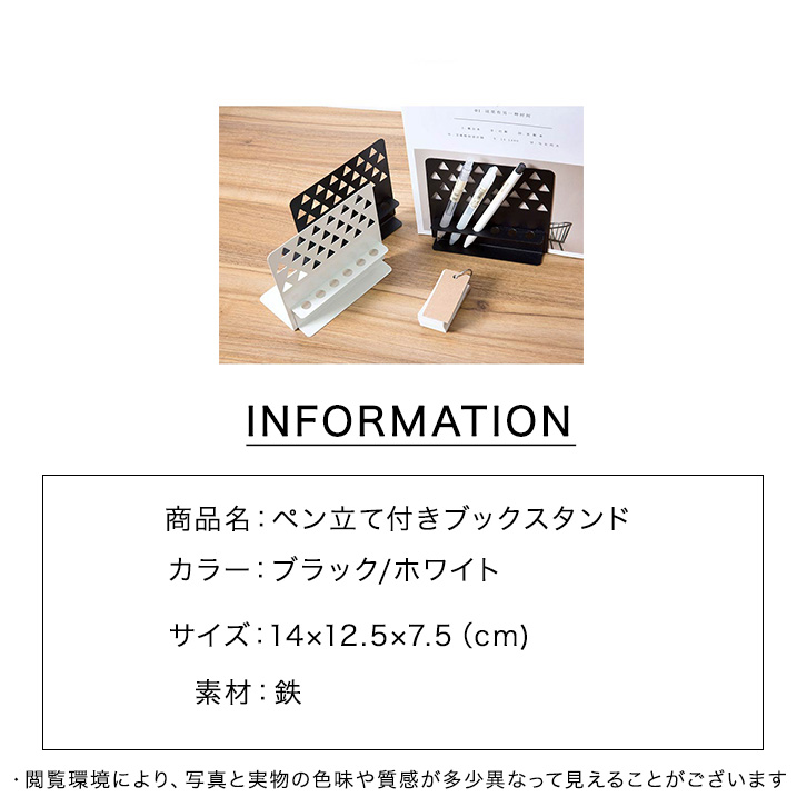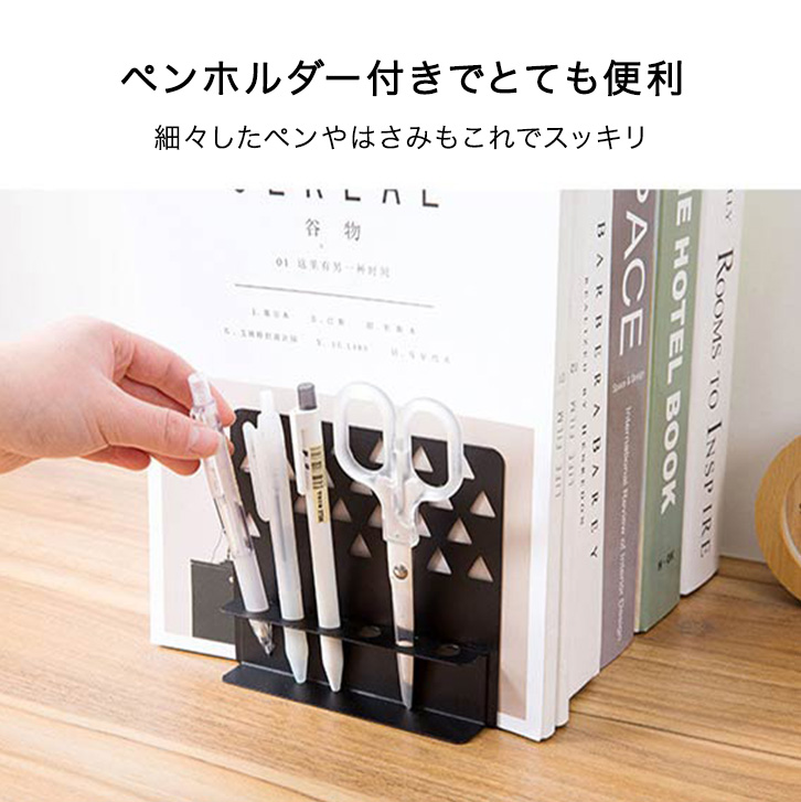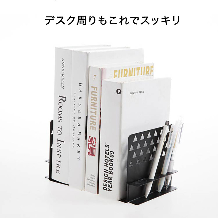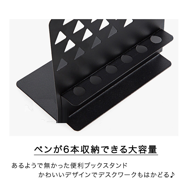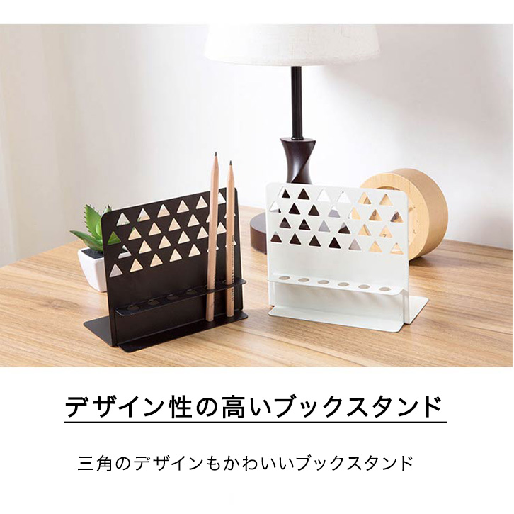 ブックスタンド 本立て シンプル おしゃれ ペンホルダー付き 卓上 ペンホルダー デスク オフィス 機能性抜群 実用性 整理整頓 オシャレ 三角 ブラック ホワイト 黒 白 デスクワーク 多機能本立て ペン立て 文房具 事務用品