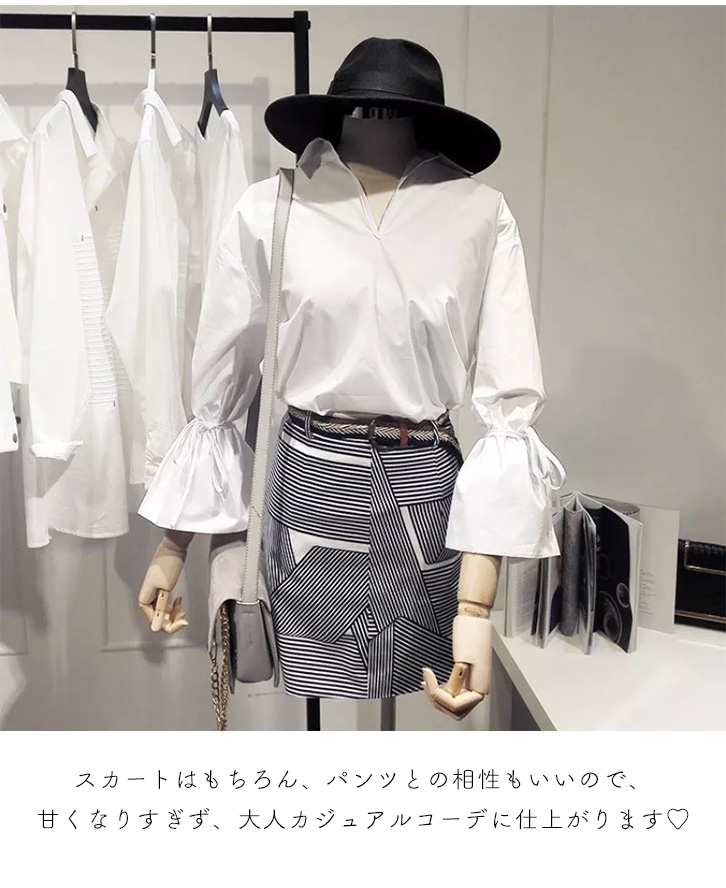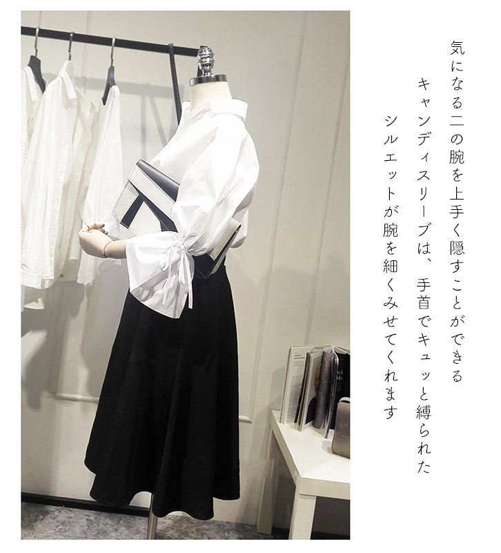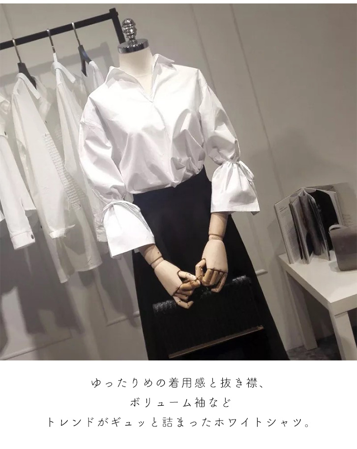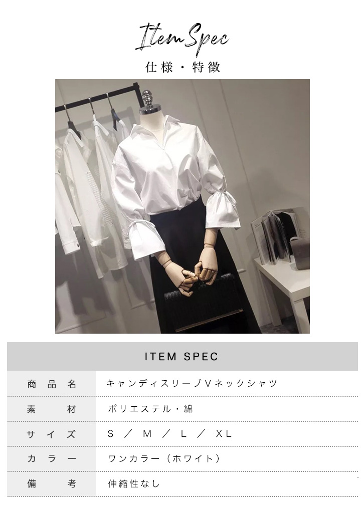 シャツ ブラウス レディース キャンディスリーブ Vネック 長袖 七分袖 ボリューム袖 トレンド ホワイト キュート 大人かわいい おしゃれ シンプル 着回し抜群 二の腕カバー 細魅せ 合わせやすい 大人カジュアル 春 秋 サイズ豊富