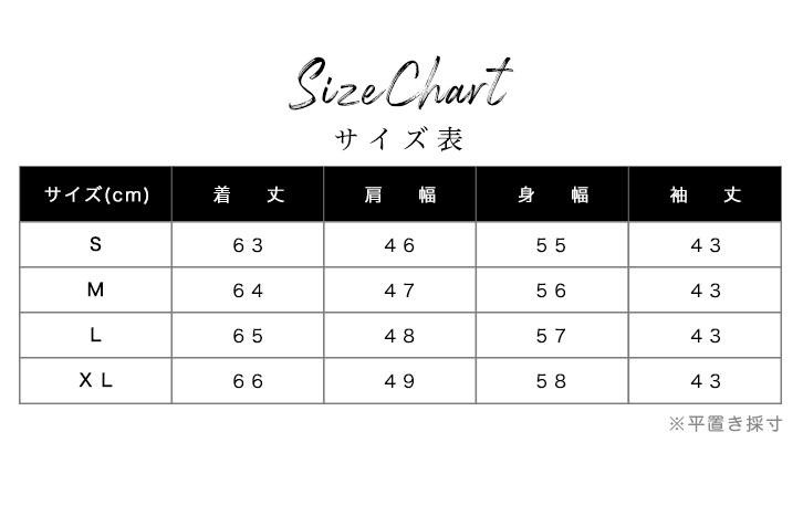 XLサイズ/着丈66、肩幅49、身幅58、袖丈43