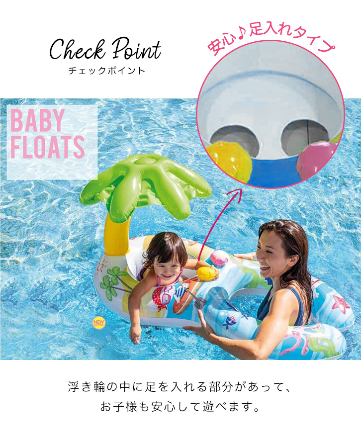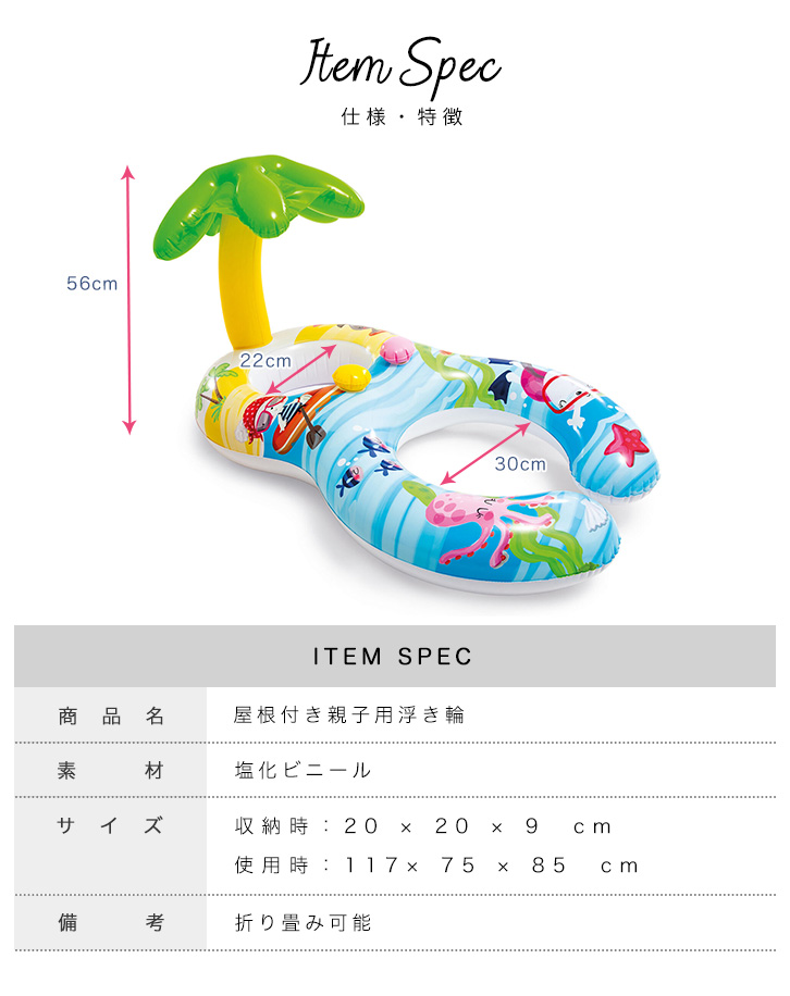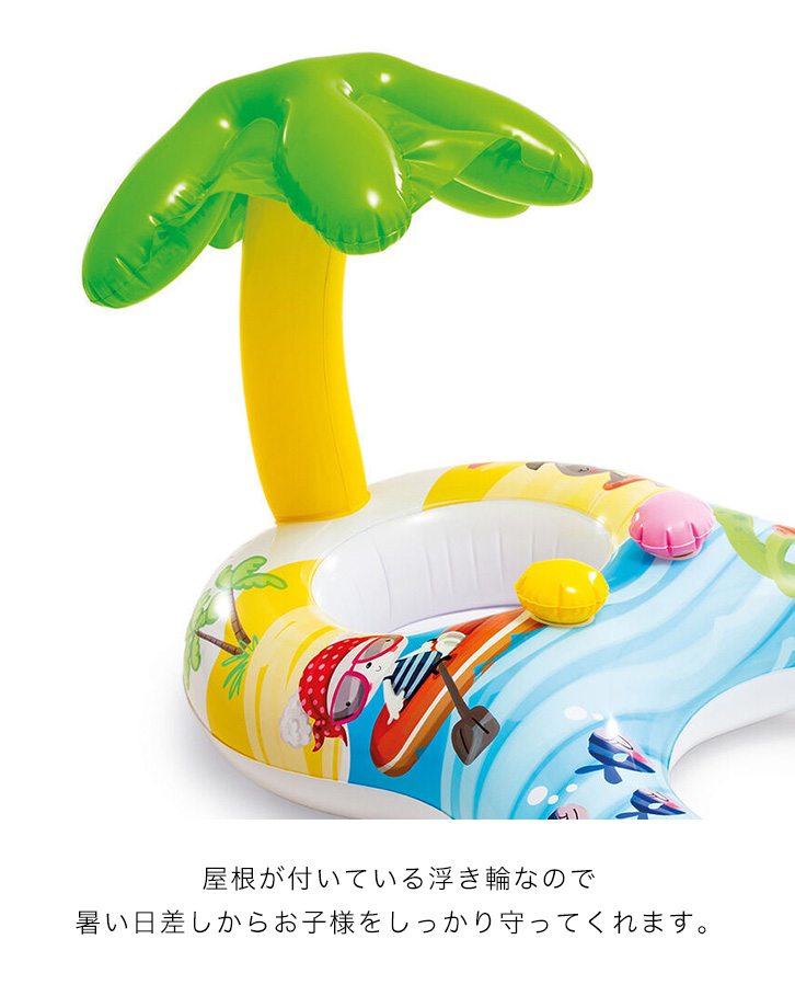 浮輪 浮き輪 子供 親子浮輪 うきわ 親子うきわ 足入れ 安心 足入れタイプ 屋根付き ヤシの木 ダブルリング 2人 ベビー パパ ママ プール 海 サンシェード付き かわいい 水遊び 浮き具 海水浴 ベビーうきわ 親子用