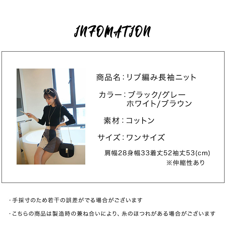 ニット レディース 長袖 長袖ニット リブ編み リブニット 細魅せ おしゃれ シンプル 着回し抜群 合わせやすい デイリー 大人かわいい 大人カジュアル 無地 ホワイト ブラック グレー ブラウン 伸縮性あり ワンサイズ カラー豊富
