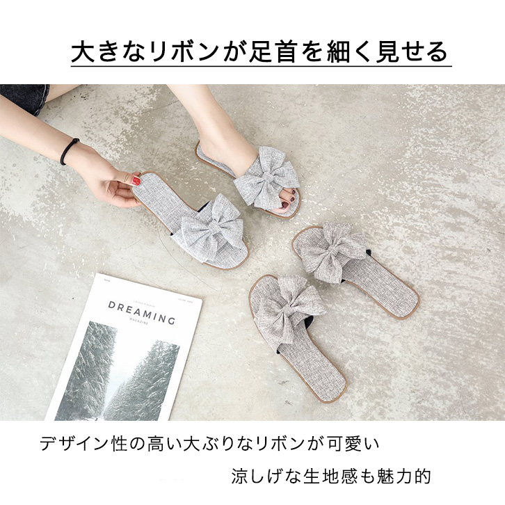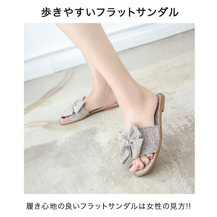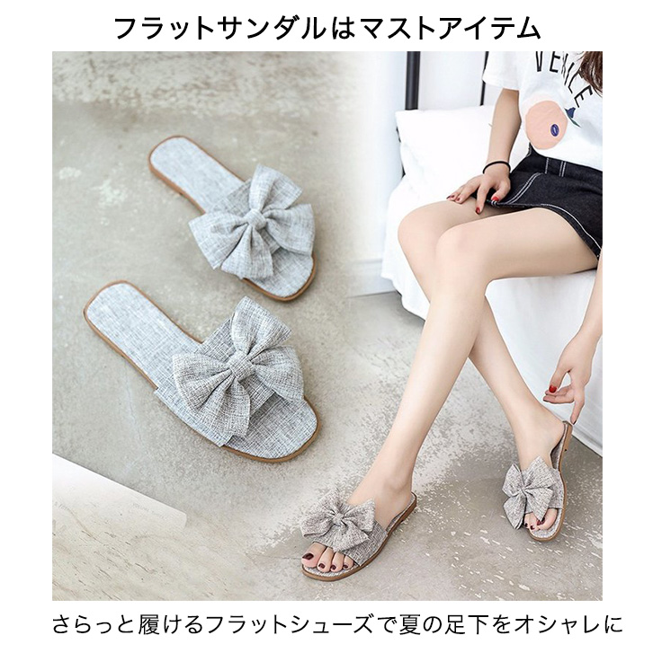 サンダル レディース フラットサンダル レディースサンダル リボンサンダル リボン 可愛い おしゃれ ビッグリボン キュート 歩きやすい 履きやすい 大人かわいい グレー ブラウン デイリー フラット シンプル リボンフラットサンダル