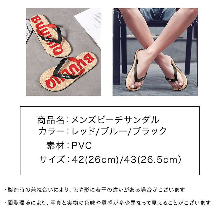 サンダル メンズサンダル ビーチサンダル メンズ メンズビーチサンダル オシャレ 軽い 履き心地ラクチン 滑りにくい シンプル おしゃれ レッド ブルー ブラック 26cm 26.5cm 合わせやすい 夏 海 プール アウトドア
