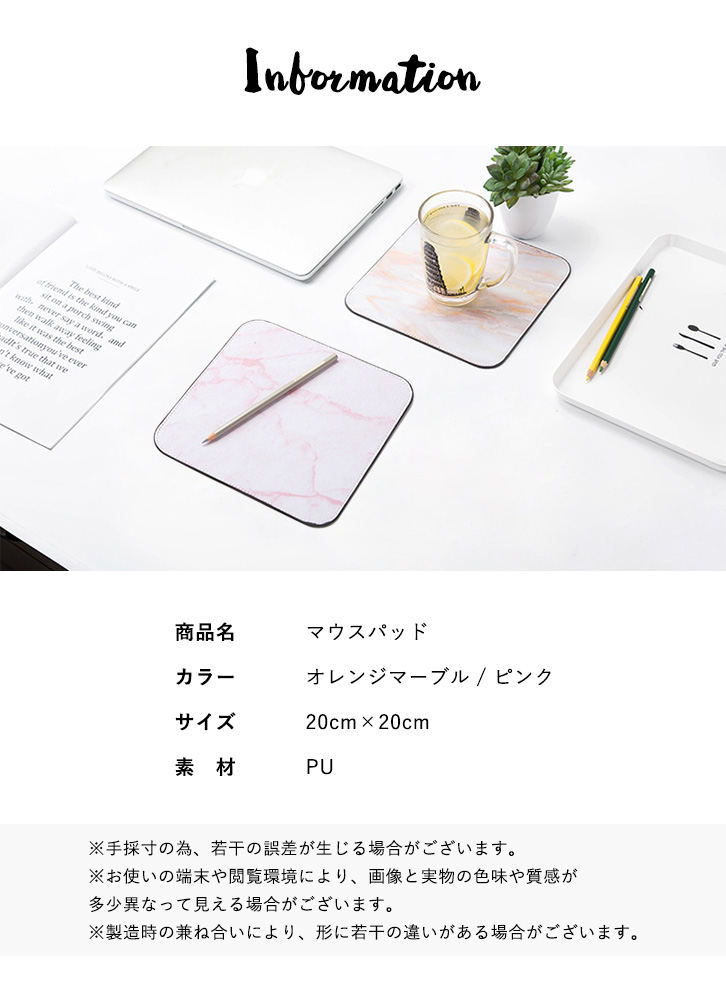 マウスパッド おしゃれ 大理石風 かわいい コースター 滑りにくい 滑り止めパッド オシャレ 可愛い 女子力アップ ピンク オレンジマーブル シンプル オフィス 会社 自宅用 パソコン デスクワーク テレワーク リモートワーク