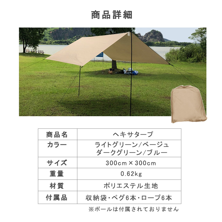 ヘキサタープ タープテント テント 大人数 よけ 防カビ 撥水 簡易テント アウトドア キャンプ用品 収納 コンパクト 快適な日陰作り 日差し 急な雨に対応