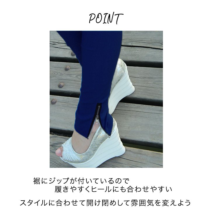 パンツ ボトム レギンスパンツ レギパン シンプル 合わせやすい 定番 着回し抜群 ネイビー フリーサイズ ジップ付き デイリー 伸縮性抜群 動きやすい ラクチン 通気性抜群 ムレにくい 小尻効果 細魅せ ウエストゴム