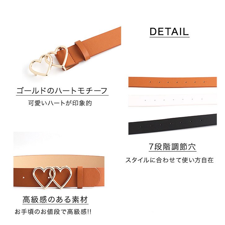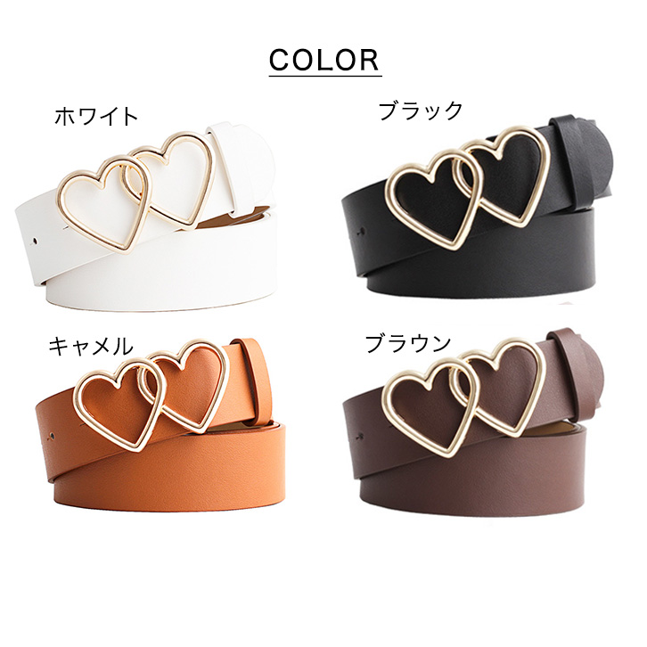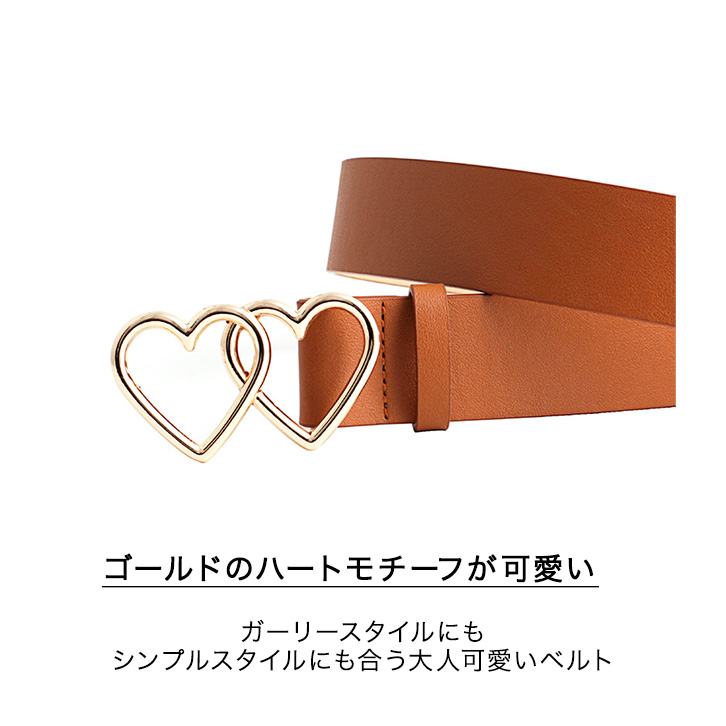ベルト レディースベルト ハート ハートバックル レディース ハートモチーフ ハートバックルベルト ゴールドバックル 大人かわいい シンプル ガーリー カジュアル 合皮 ホワイト ブラック キャメル ブラウン 合わせやすい