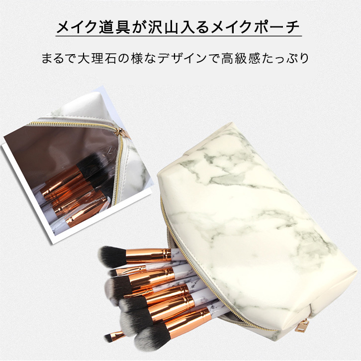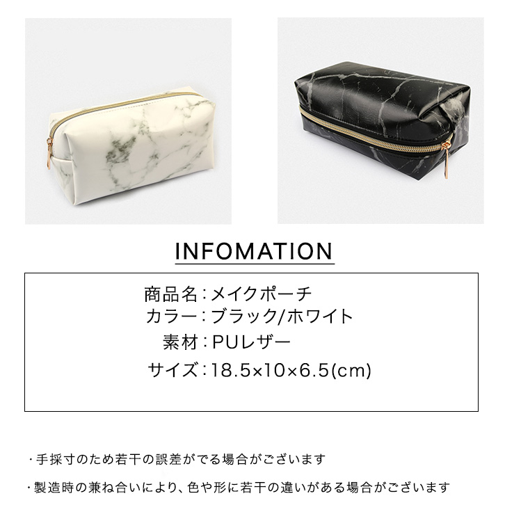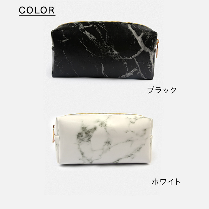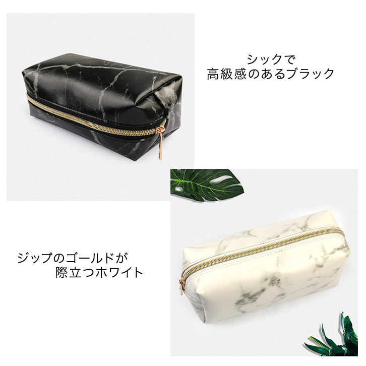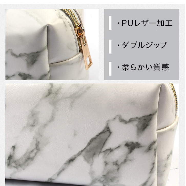 ポーチ メイクポーチ マーブル柄 大理石風 大理石デザイン 高級感 上品 大人かわいい コスメポーチ レディース 化粧品 コスメ 小物入れ 多用途 PUレザー ホワイト ブラック デイリー 旅行 お泊まり シンプル