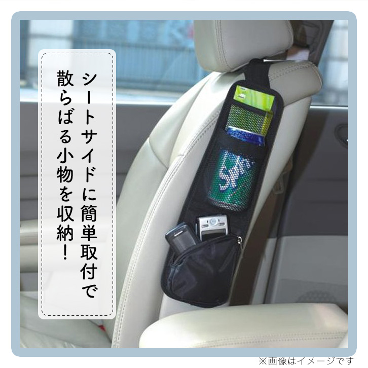 収納ポケット 車用 車載用 車載収納ポケット 車用収納ポケット 収納 整理整頓 取付簡単 シートサイド取り付け 工具不要 ポーチポケット 小物収納 小物入れ ドリンク入れ ドリンクホルダー メッシュポケット ファスナーポケット