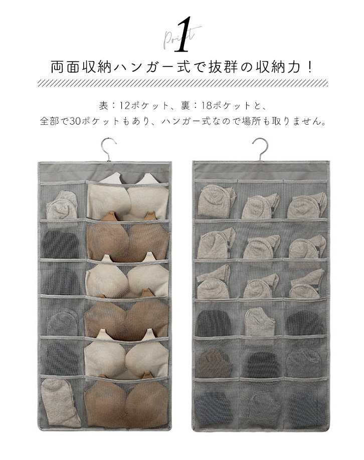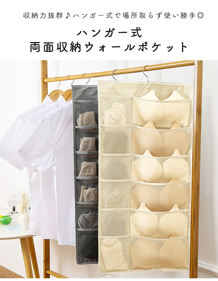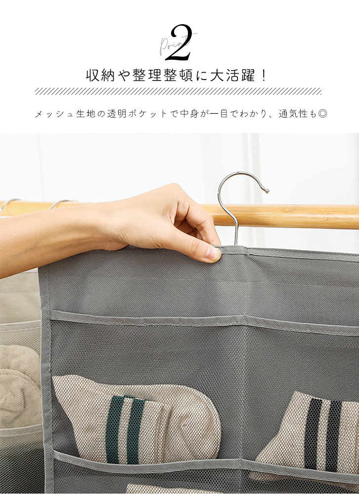 ウォールポケット 両面収納 ハンガー式 ハンガー式ウォールポケット 収納力抜群 両面収納ウォールポケット すっきり 整理整頓 両面収納可能 省スペース メッシュポケット 通気性抜群 下着 靴下 小物 手洗い可能