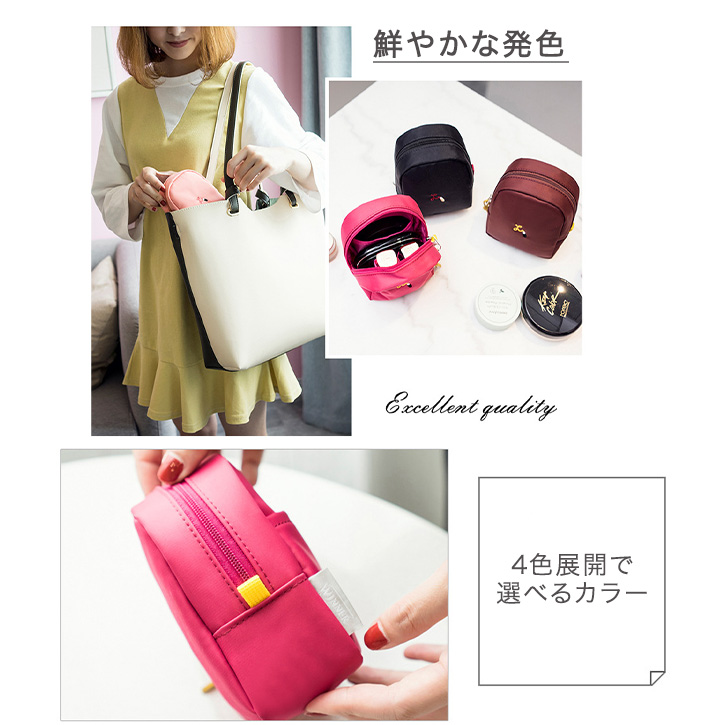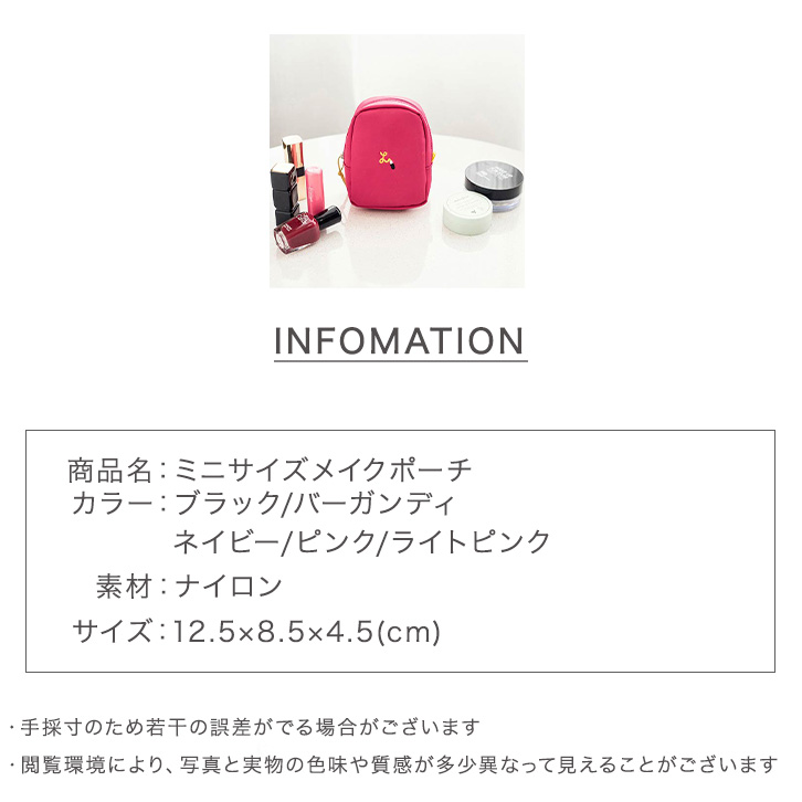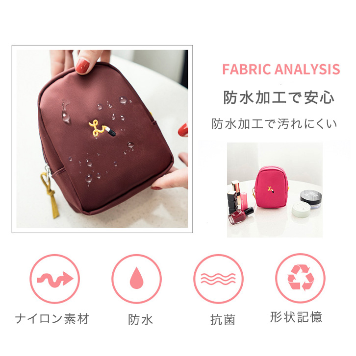 メイクポーチ ポーチ ミニサイズ ミニポーチ ミニメイクポーチ コンパクト 仕切り付き 収納力抜群 使いやすい フリーポケット付き 防水加工 ナイロン素材 デイリー カラー豊富 ライトピンク ブラック ピンク バーガンディ ネイビー
