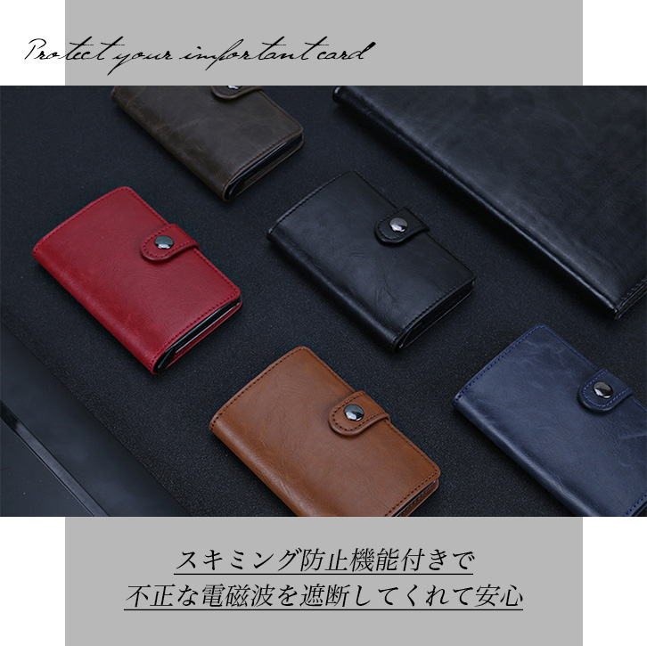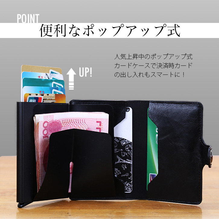 カードケース カード入れ ケース カード ポップアップ式 便利 スキミング防止機能 スキミング防止 シンプル 無地 男女兼用 男性 女性 使いやすい 電磁波遮断 スナップボタン式 スナップボタン開閉 デイリー ビジネス