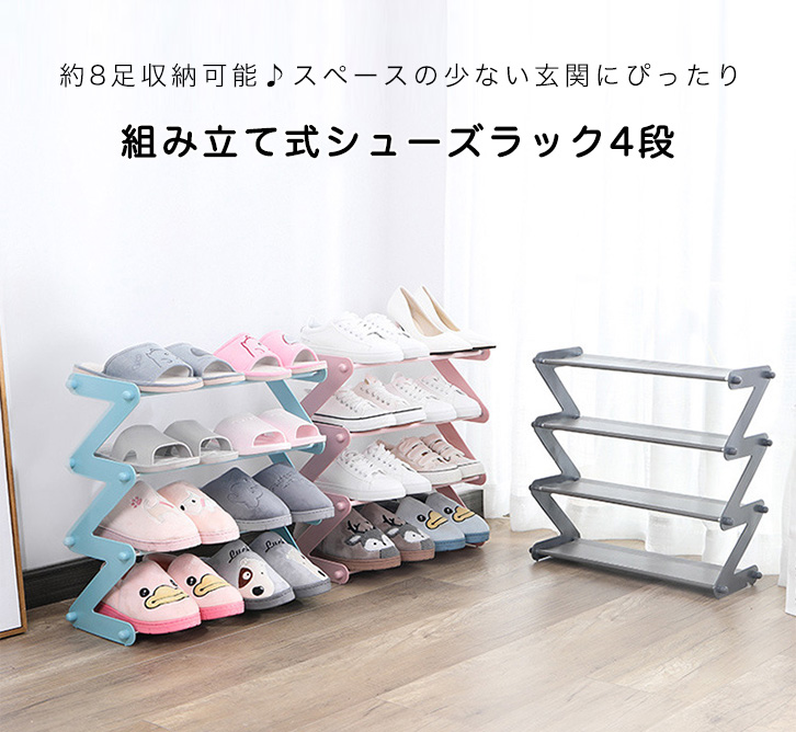 シューズラック ラック 靴収納ラック 収納ラック 収納 靴 シューズ 4段 組み立て式 最大8足収納可能 軽量 組立簡単 整理棚 多用途 シンプル 水に強い 不織布 お手入れ簡単 工具不要 インテリア シンプル おしゃれ