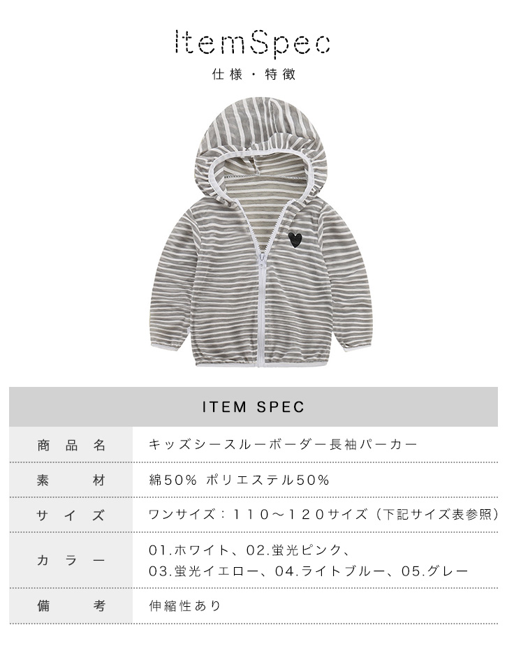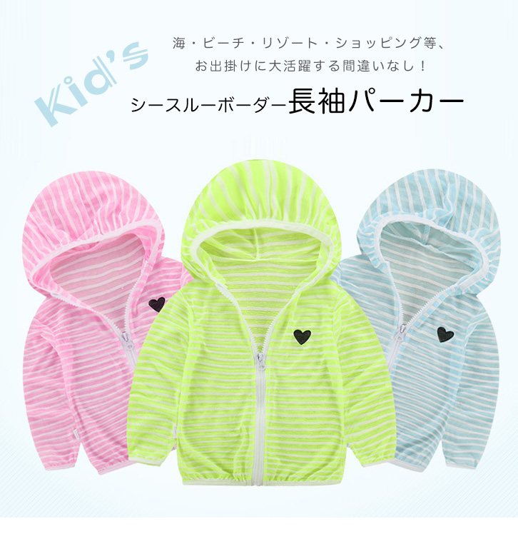 パーカー キッズパーカー キッズ 長袖 シースルー ボーダー ボーダーパーカー シースルーパーカー カラー豊富 カラーバリエーション豊富 羽織り 春 秋 お出かけ アウトドア フード付き ジップアップ 着脱楽々 軽量