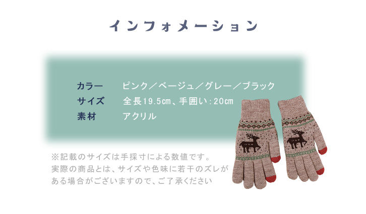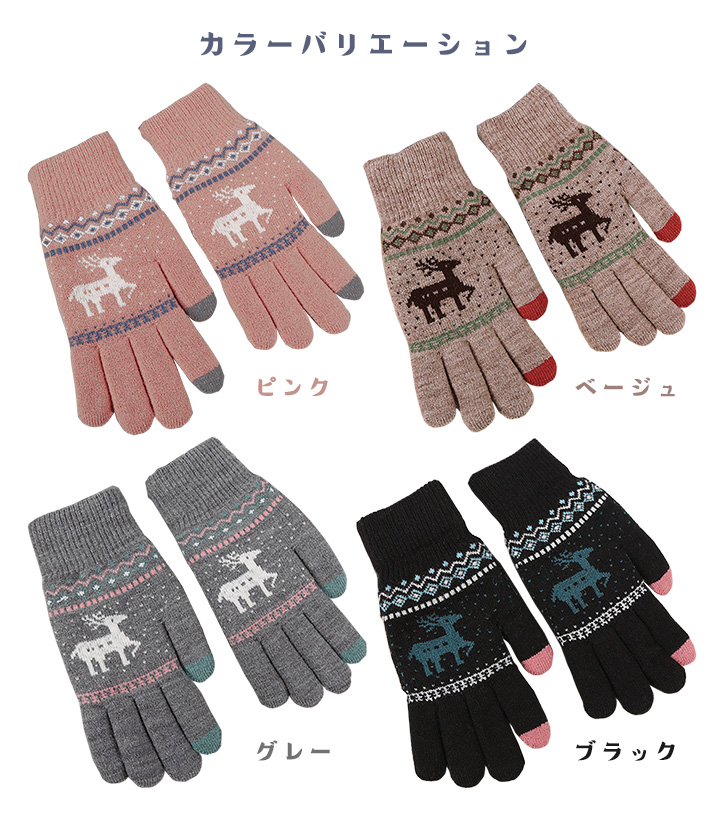 手袋 レディース かわいい 冬 秋 フリーサイズ スマホ操作可能 便利 トナカイ 防寒 寒さ対策 スマホ対応 手ぶくろ グローブ あったか 可愛い キュート 伸縮性 暖かい 手触り抜群 冷え対策 冷え防止