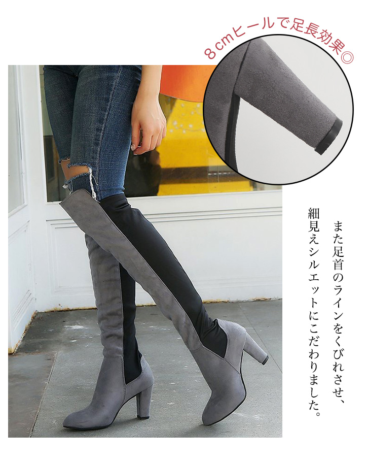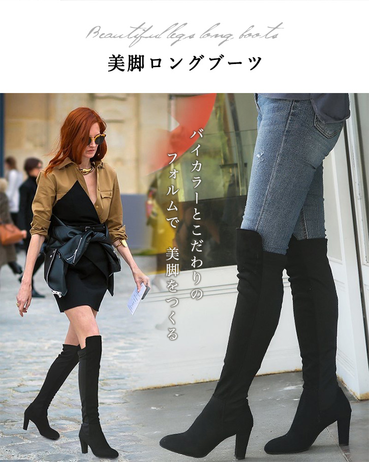 ロングブーツ ロング ニーハイブーツ ブーツ ニーハイ レディース 太ヒール エレガンス ニーハイロングブーツ 靴 秋冬 あったか 防寒 かっこいい 黒 ブラック おしゃれ 美脚 脚長 細見せ きれいめ エレガント