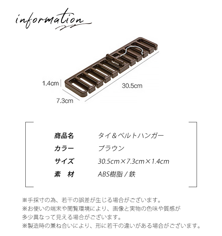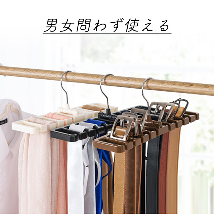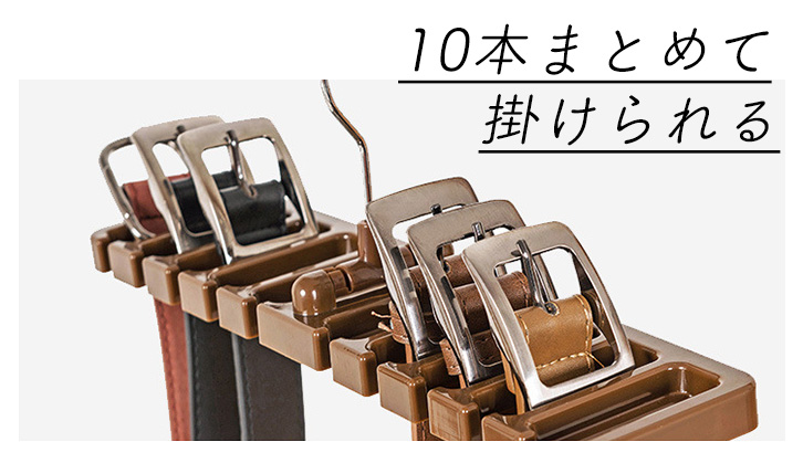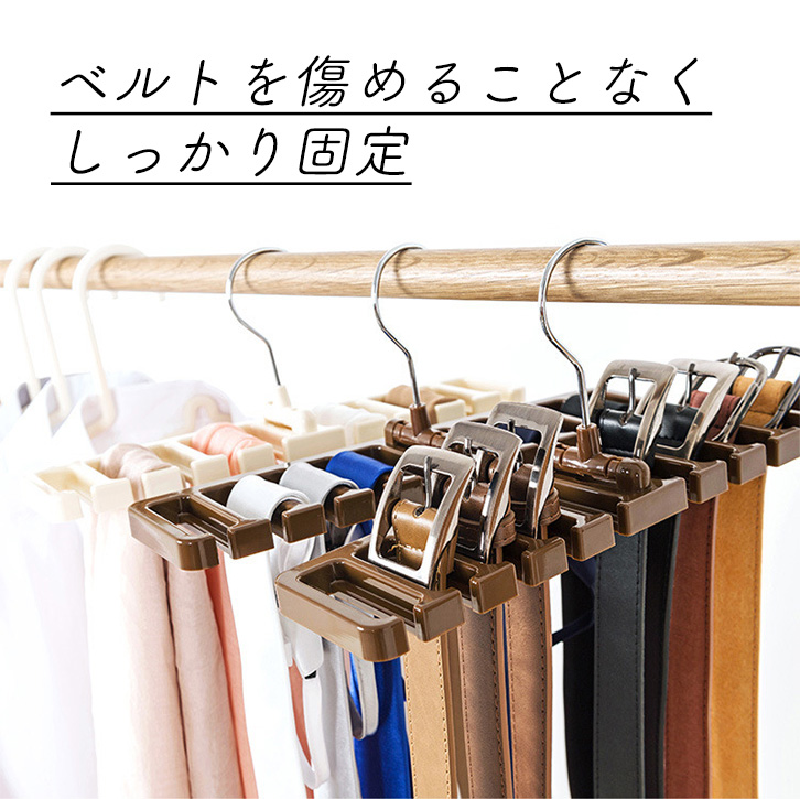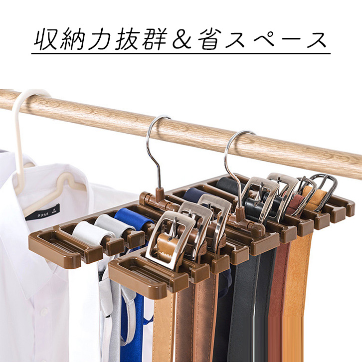 ハンガー タイハンガー ベルトハンガー ネクタイハンガー タイ ネクタイ ベルト 使いやすい 便利 収納力抜群 省スペース 固定 10本収納可能 最大10本 10本 ブラウン クローゼット収納 収納グッズ ベルト用 ネクタイ用