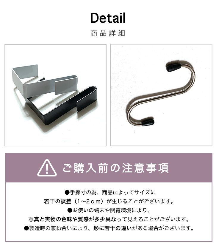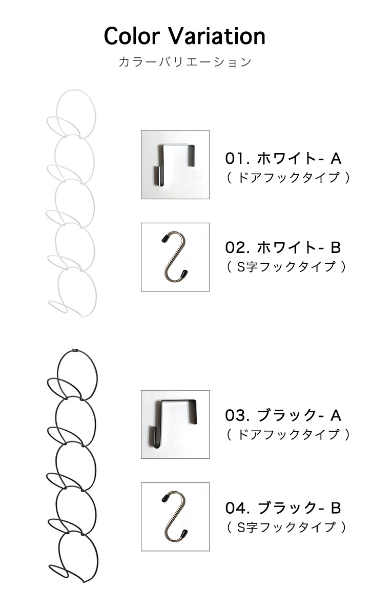 【カラータイプ】タイプ1(ホワイトドアフックタイプ)/タイプ2(ホワイトS字フックタイプ)/タイプ3(ブラックドアフックタイプ)/タイプ4(ブラックS字フックタイプ)