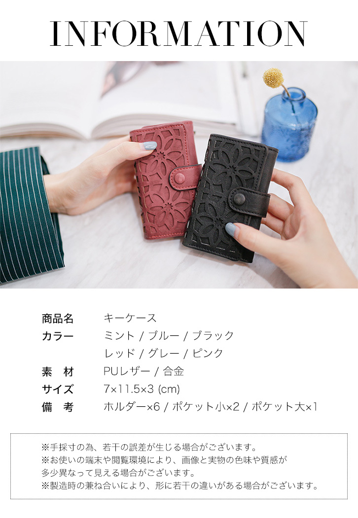 キーケース レディース レディースキーケース 花柄 花 フラワー マルチキーケース エレガント 上品 切り絵風 おしゃれ 大人かわいい カード入れ 万能 機能性抜群 実用性 PUレザー カラー豊富 カラバリ豊富 カラバリ