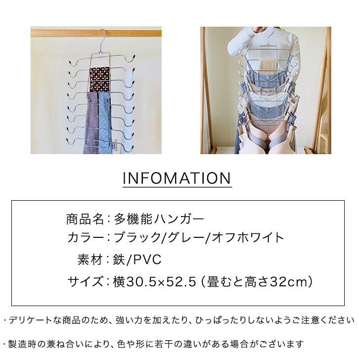 ハンガー 多機能ハンガー 多機能 省スペース 衣類 ネクタイ 下着 肌着 たくさん干せる 360度回転 フック付き ズレ落ちない 丈夫 最大8着 折りたたみ ブラック グレー オフホワイト 実用的 生活用品 洗濯物 洗濯