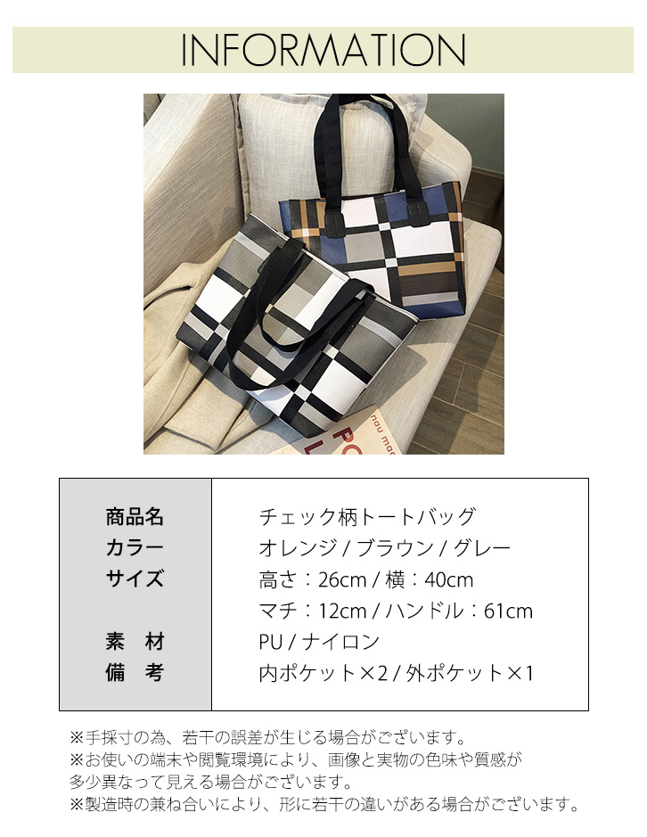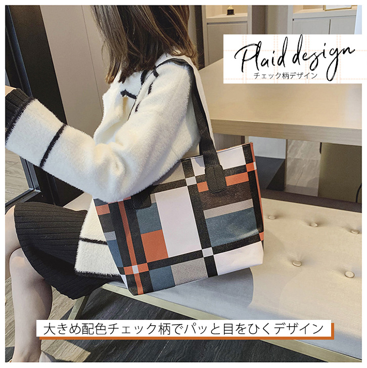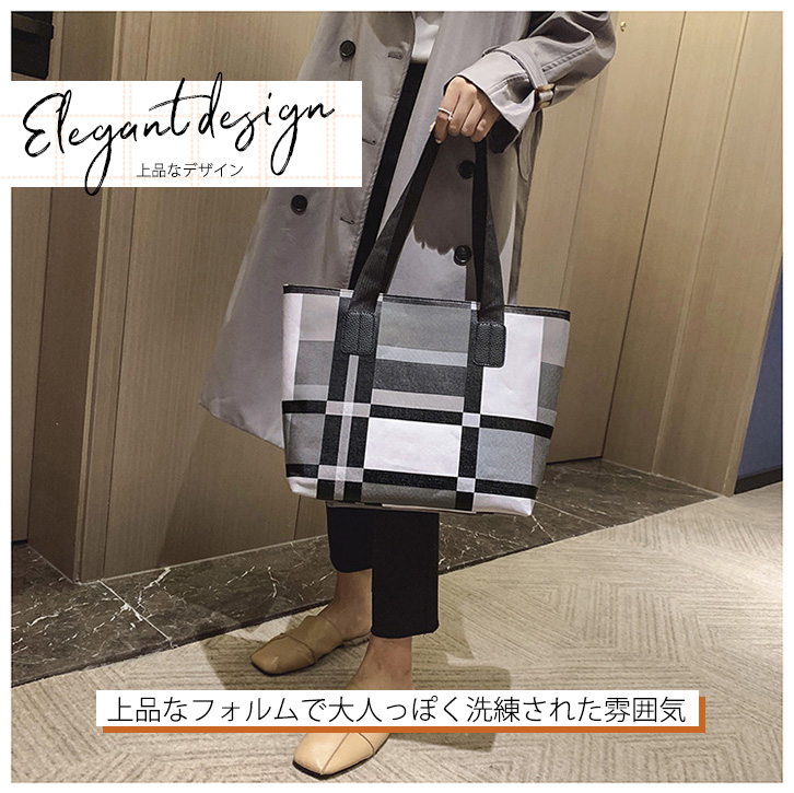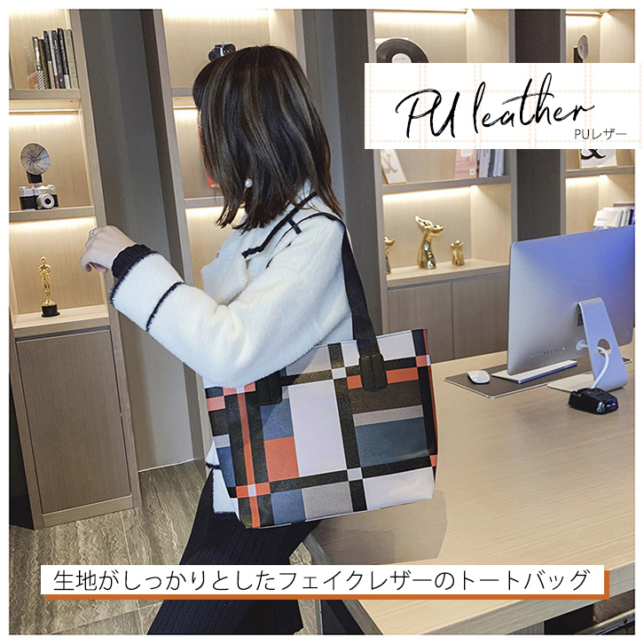 トートバッグ レディース レディーストート バッグ 大容量 収納力抜群 大容量収納 A4収納可能 マザーズバッグ チェック柄 配色チェック おしゃれ 上品 通勤 通学 大人かわいい ファスナー開閉 カジュアル フェイクレザー