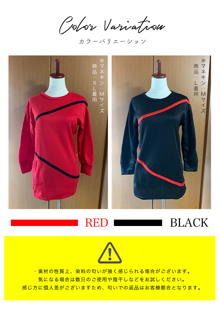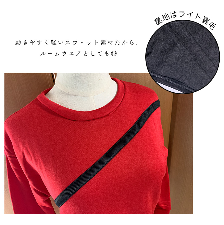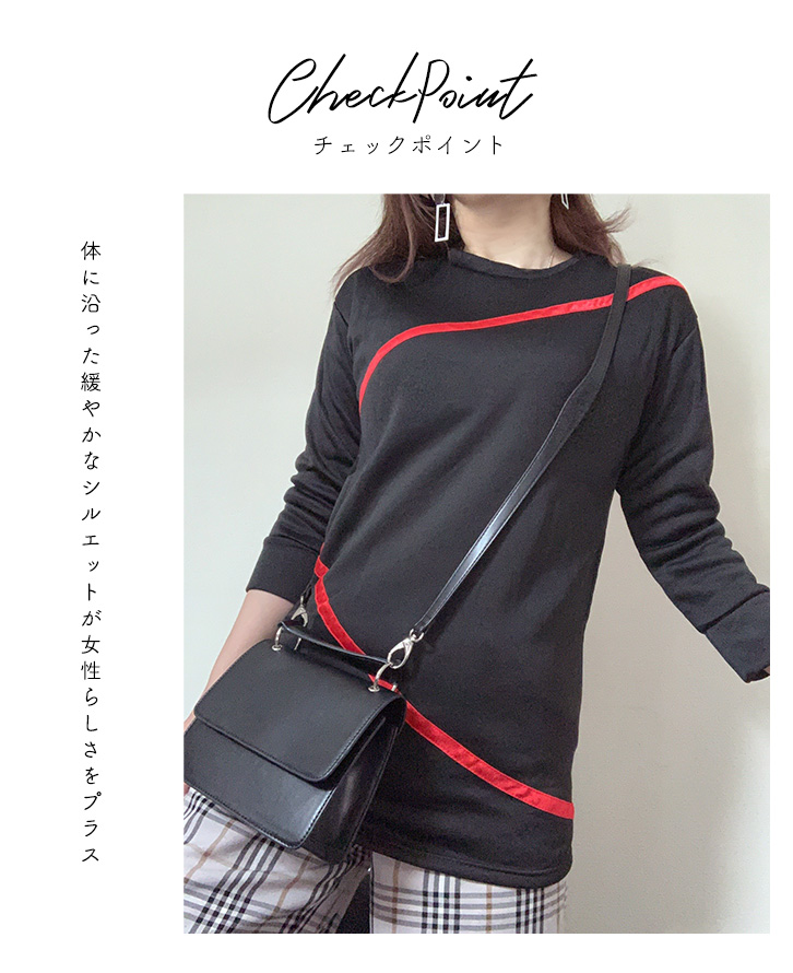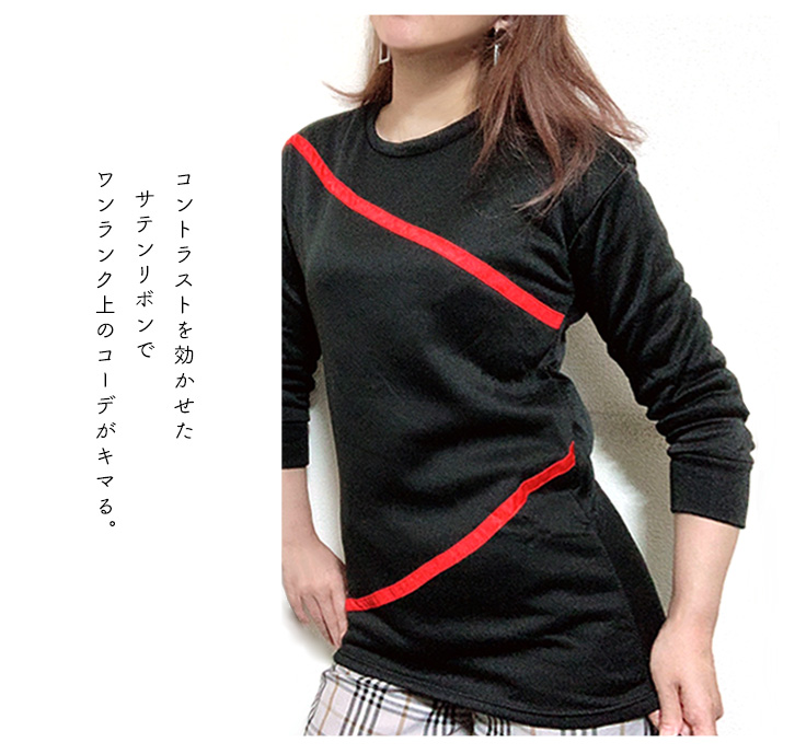 トップス レディース 長袖 スウェット チュニック スウェットチュニック ライト裏毛 サイズ豊富 フリース 美シルエット サテンリボン 動きやすい スウェット素材 軽い ルームウェア デイリー 裏毛 部屋着 レッド ブラック シンプル