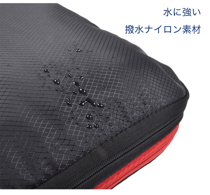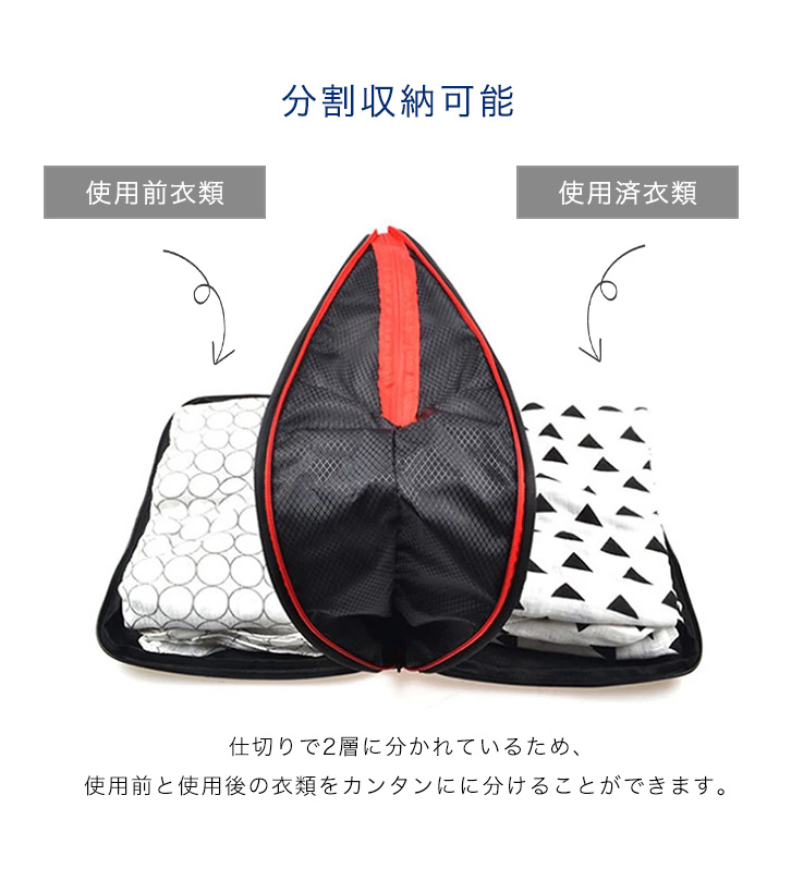 ポーチ トラベルポーチ トラベル収納ポーチ 収納ポーチ 収納 中サイズ 中 コンパクト 衣類収納 ファスナー すっきり 整理整頓 分割収納 仕切り 2層構造 水に強い 撥水加工 ナイロン素材 撥水 グレー ブラック 旅行 出張