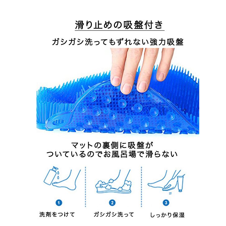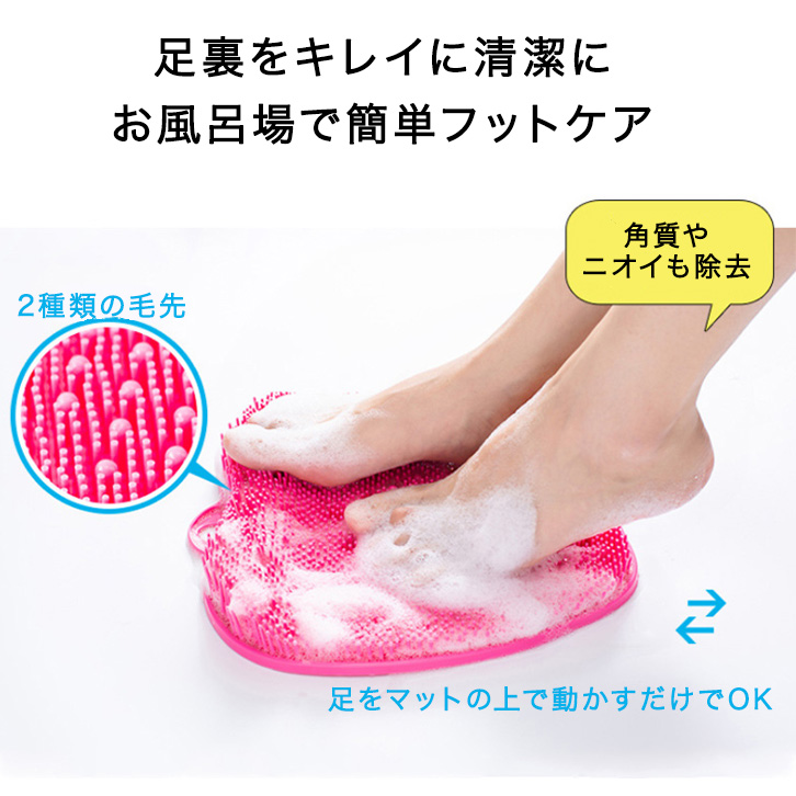 フットブラシ フットブラシマット 足洗いマット 足裏ケア 足洗いマットブラシ 足裏スッキリ 角質除去 綺麗 清潔 お風呂場 バス用品 ニオイ除去 ツボ押し 汚れ除去 グリーン ピンク ブルー 滑り止め吸盤付き 強力吸盤 マッサージ効果