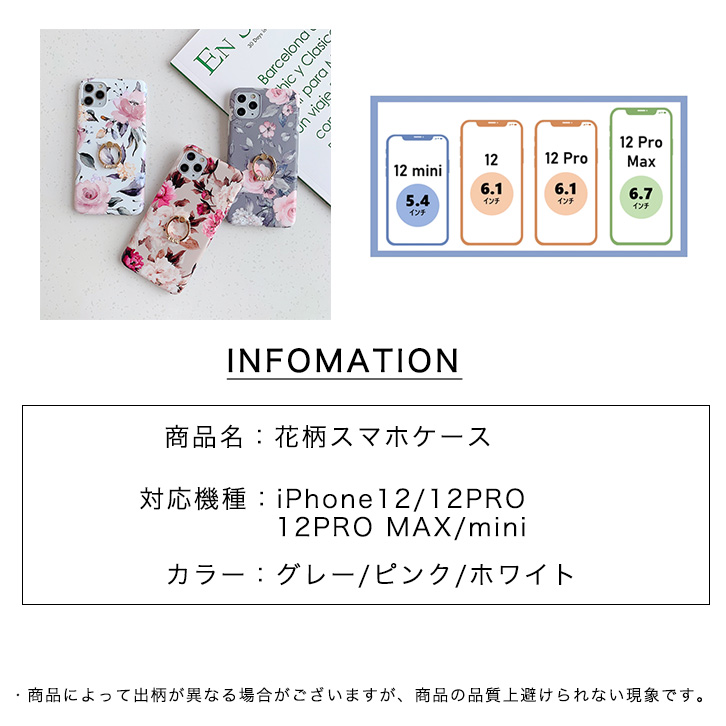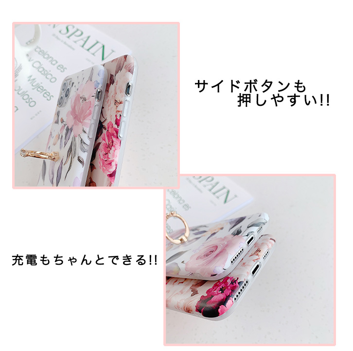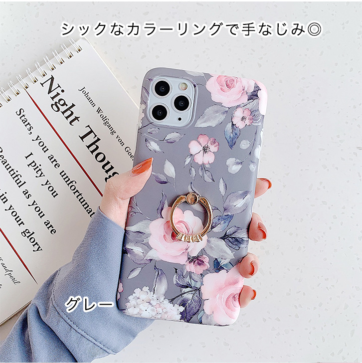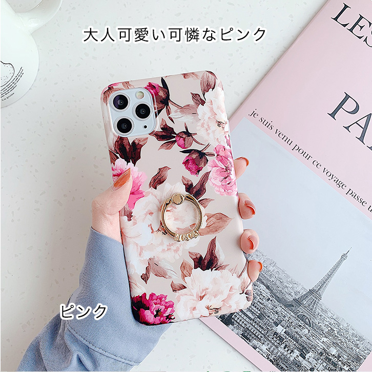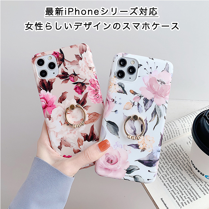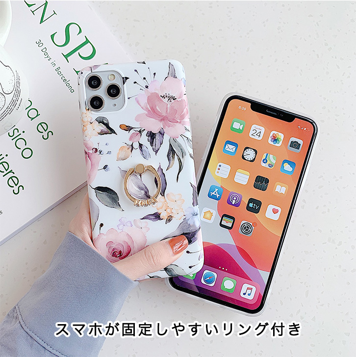 iPhoneケース iPhoneカバー ケース カバー iPhone12 iPhone12Pro iPhone12ProMAX iPhone12mini 花 フラワー リング付き 落下防止 かわいい おしゃれ 可愛い 女子力アップ 指輪風リング キュート フェミニン オシャレ