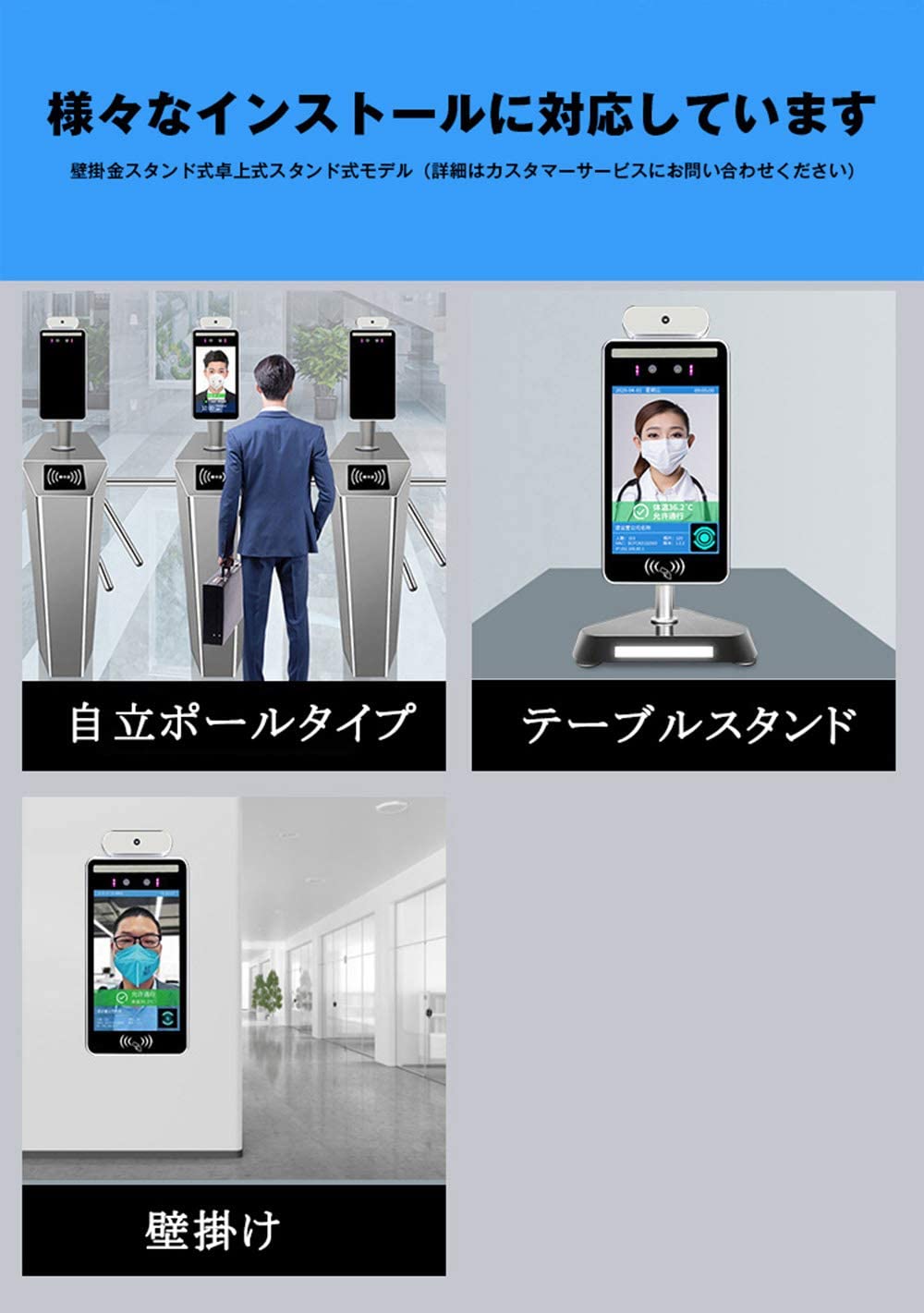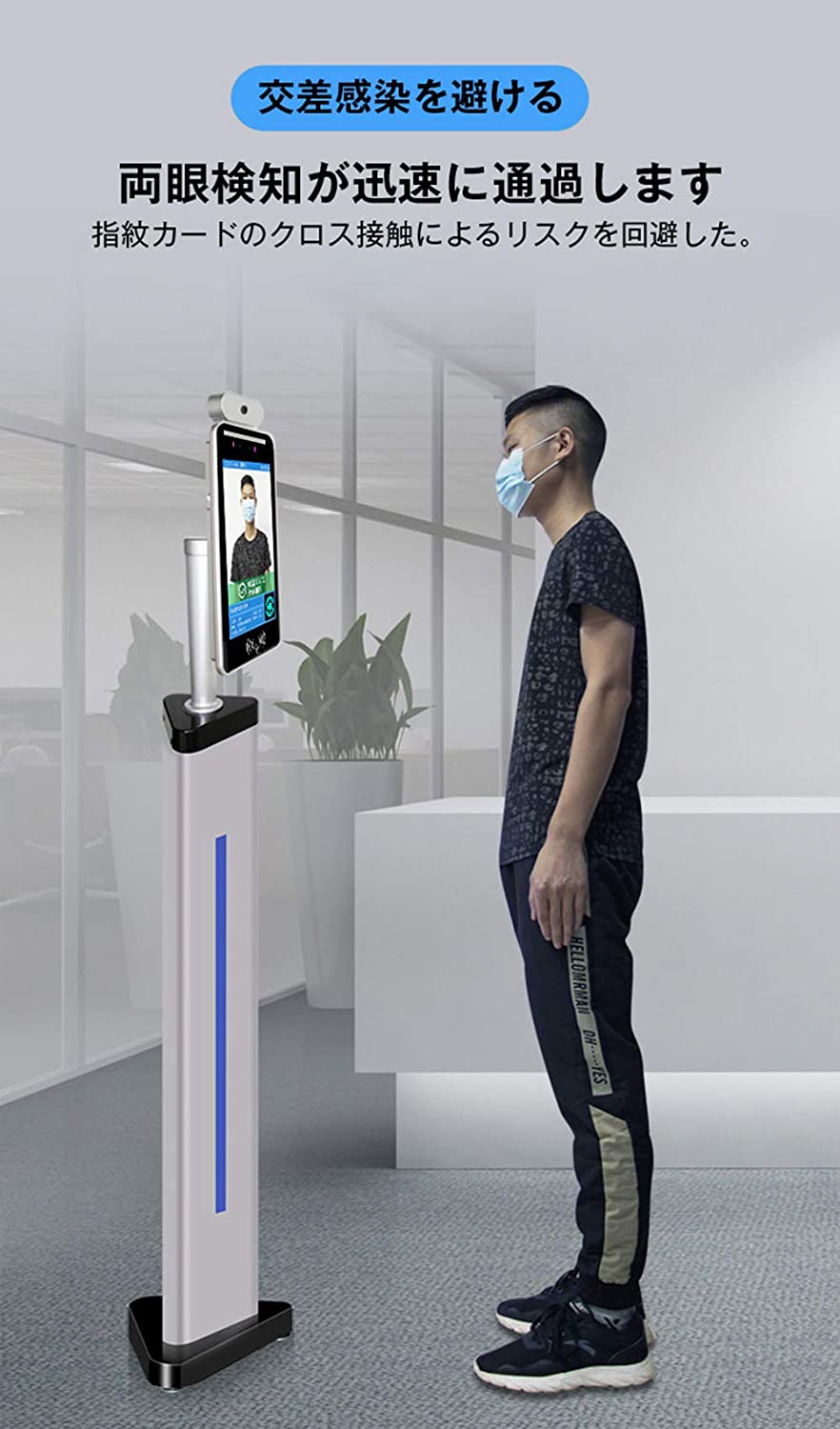 iFACE は検温とマスク検知、手指の消毒が同時にできる検温ソリューション。