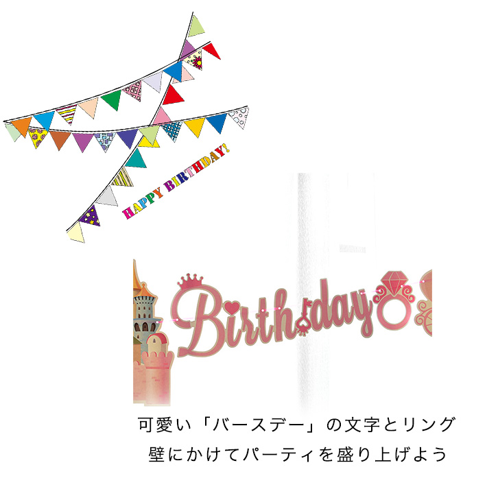 ガーランド デコレーションガーランド バースデーガーランド デコレーションウォール ウォールデコレーション 誕生日 バースデー お祝い 可愛い 誕生日会 バースデーパーティー かわいい お城 プリンセス キュート ピンク