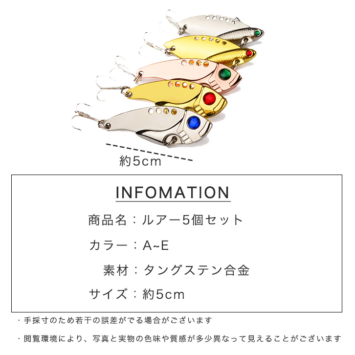 ルアー 5個セット フィッシングルアー メタルバイブ メタルバイブルアー 釣り用品 釣り具 フィッシング ルアーセット 釣り具セット 釣り道具 ルアー5セット フィッシング用品 fishing フィッシングルアー アピール力抜群