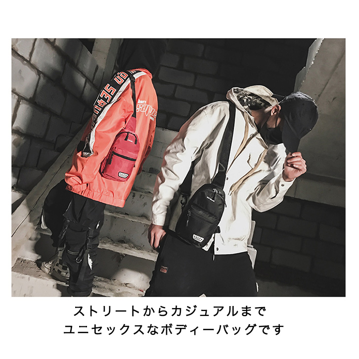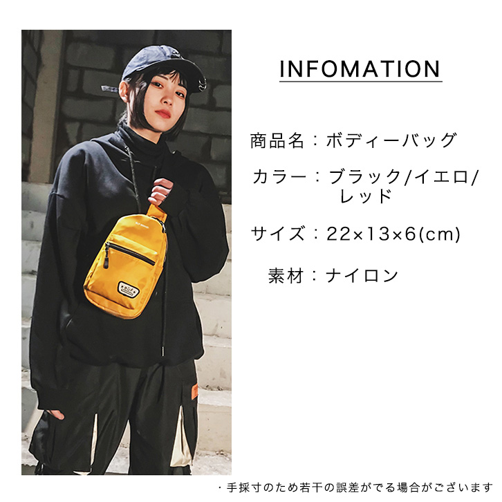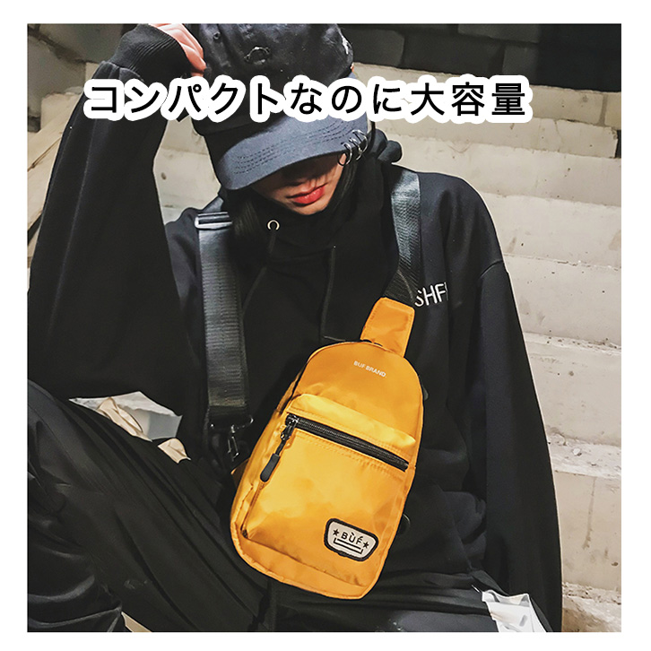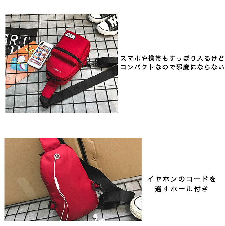 ボディバッグ メンズ レディース ユニセックス ワンショルダー ショルダーバッグ シンプル おしゃれ カジュアル イヤホンホール付き ダブルジップ 長さ調節可能 斜め掛け 肩掛け コンパクト デイリー お揃い ブラック イエロー レッド