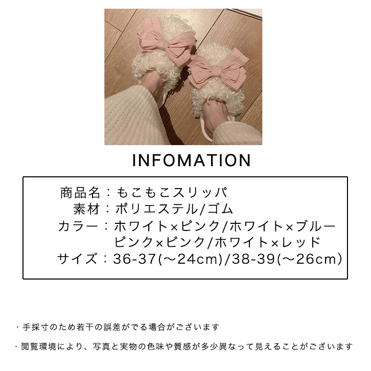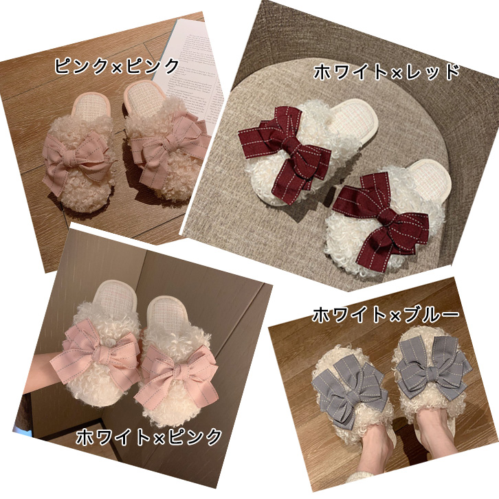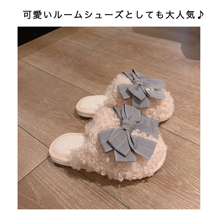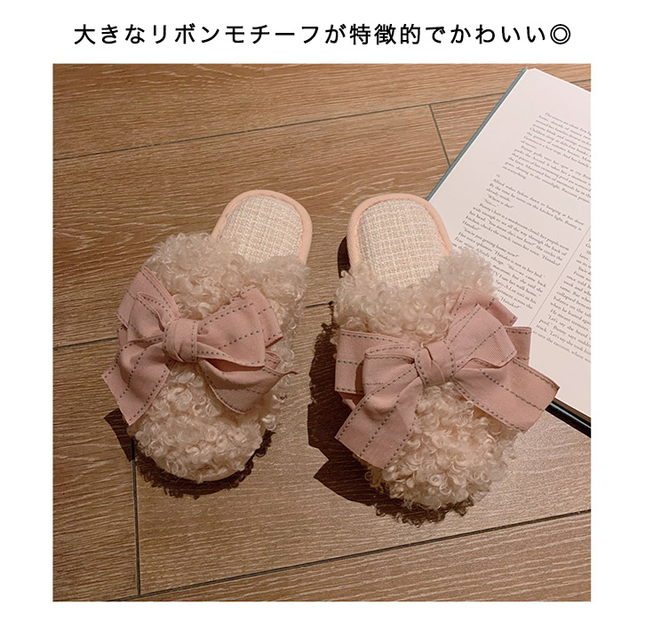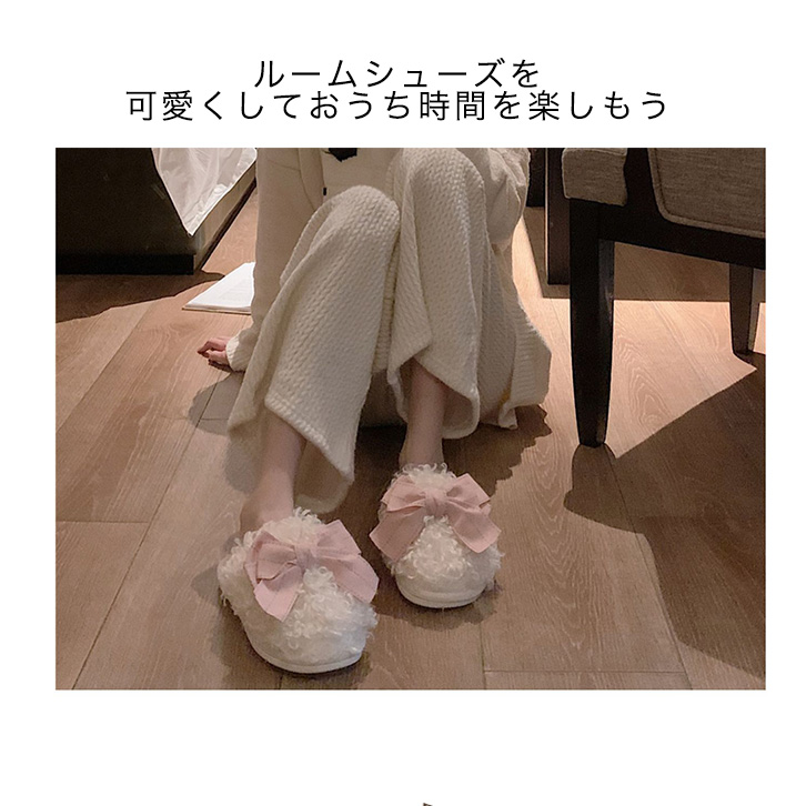 スリッパ ルームシューズ 室内履き ルームスリッパ ふわふわ もこもこ リボンスリッパ ふわもこ リボンシューズ リボン あったか 可愛い おしゃれ キュート ルーム用シューズ かわいい 暖かい 冷え防止 女子力アップ 室内シューズ