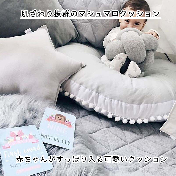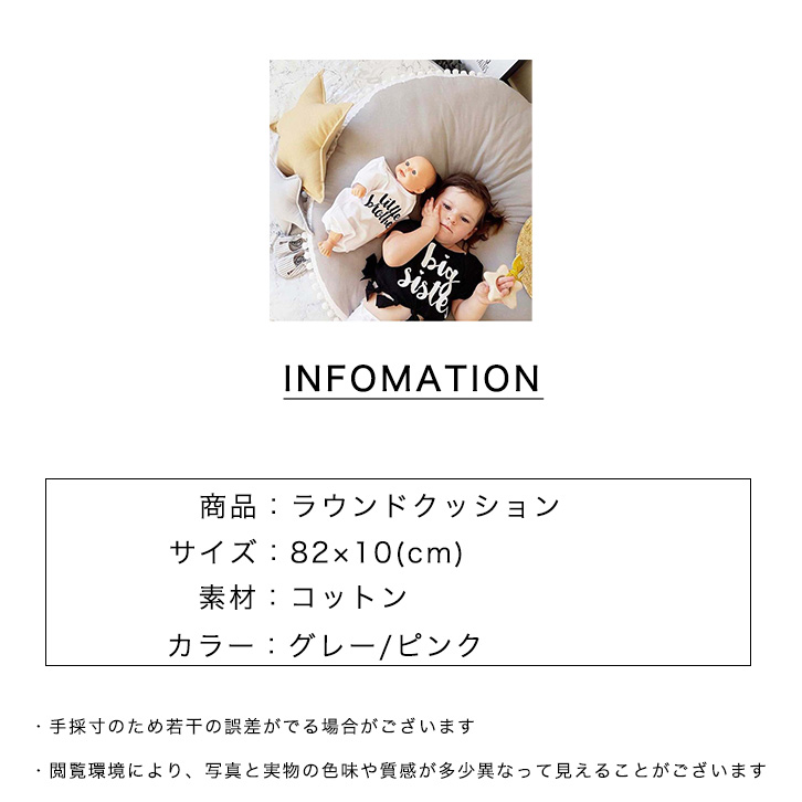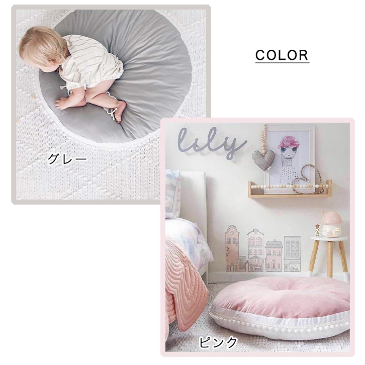ベビークッション ベビークッションマット クッション マット 赤ちゃん 丸型 円形 ラウンドマット ラウンドクッション おしゃれ 座布団 ごろ寝 寝相アート ベビーマット かわいい ギフト プレゼント 分厚い 北欧風 ポンポン飾り