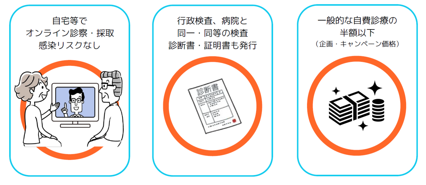 一般的な自費診療の半額以下で検査が受けられます。(企画・キャンペーン価格)