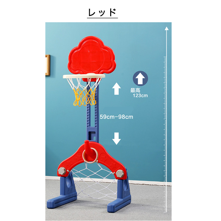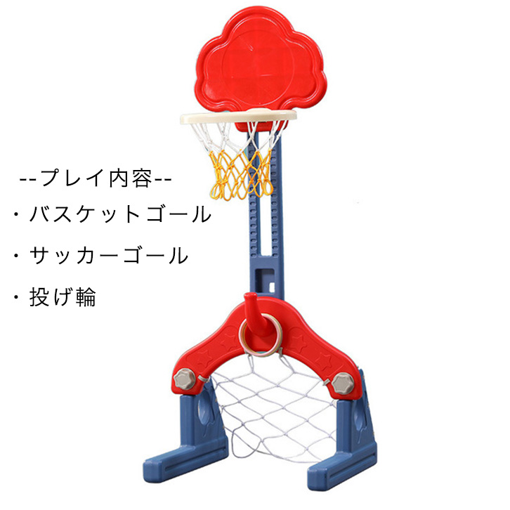 バスケットゴール バスケットボール キッズ用 高さ調整可能 キッズ用おもちゃ おもちゃ 玩具 子供用玩具 子供用 キッズ 子供 ゴール バスケットボール サッカーボール 輪投げ ホビー 楽しい 運動 レッド ブルー 室内 屋内 家庭用