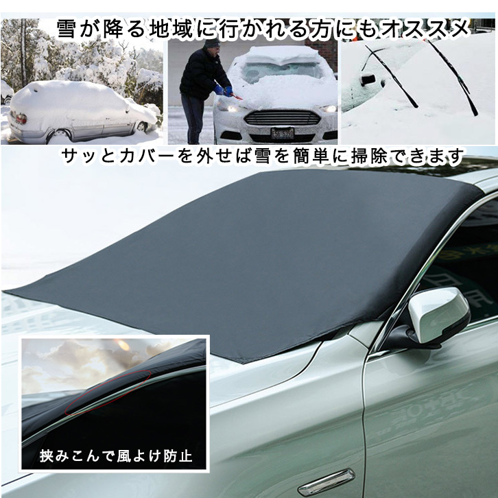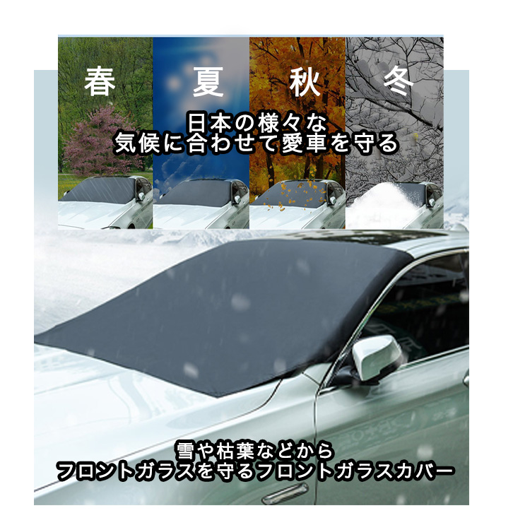 フロントガラスカバー カーフロントカバー フロントガラス 車カバー カバー 凍結防止 花粉 黄砂 日よけ 降雪 霜 凍結 ホコリ 鳥糞 日除け 軽自動車 普通自動車 SUV オールシーズン 春 夏 秋 冬 コンパクト収納可能 取り付け簡単 マグネット付き サンシェード