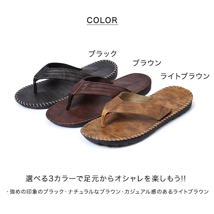 サンダル ビーチサンダル ビーサン 大人 かっこいい レザー調 メンズ オシャレ 男性 スリッパ ブラック ブラウン ライトブラウン