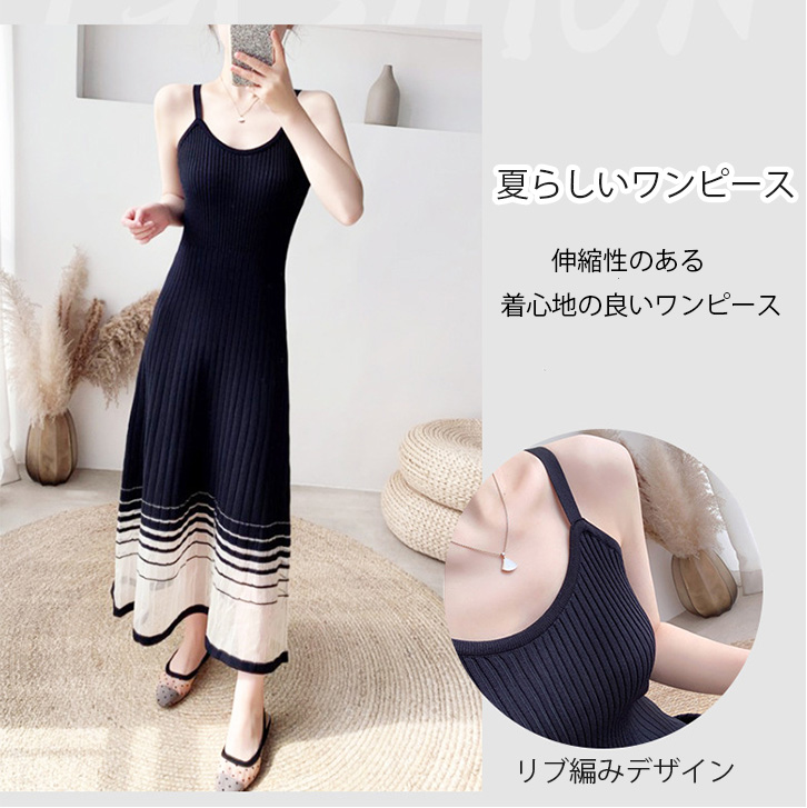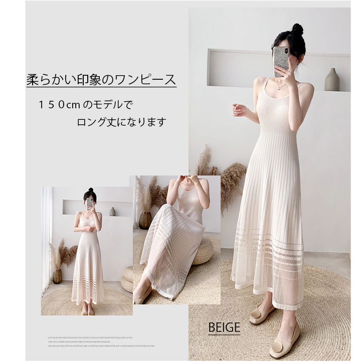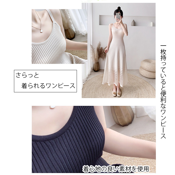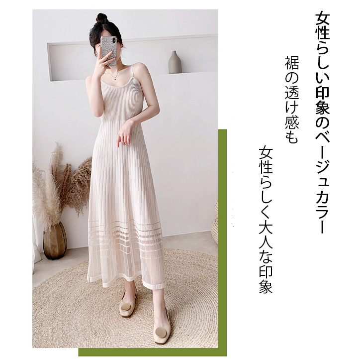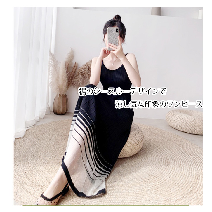 ワンピース レディース ノースリーブ キャミワンピース ミモレ丈 リブニット シースルーワンピース 透け感 レディースワンピース ワンピ 夏 Aライン 細魅せ シンプル おしゃれ 可愛い 着回し抜群 ルームウェア