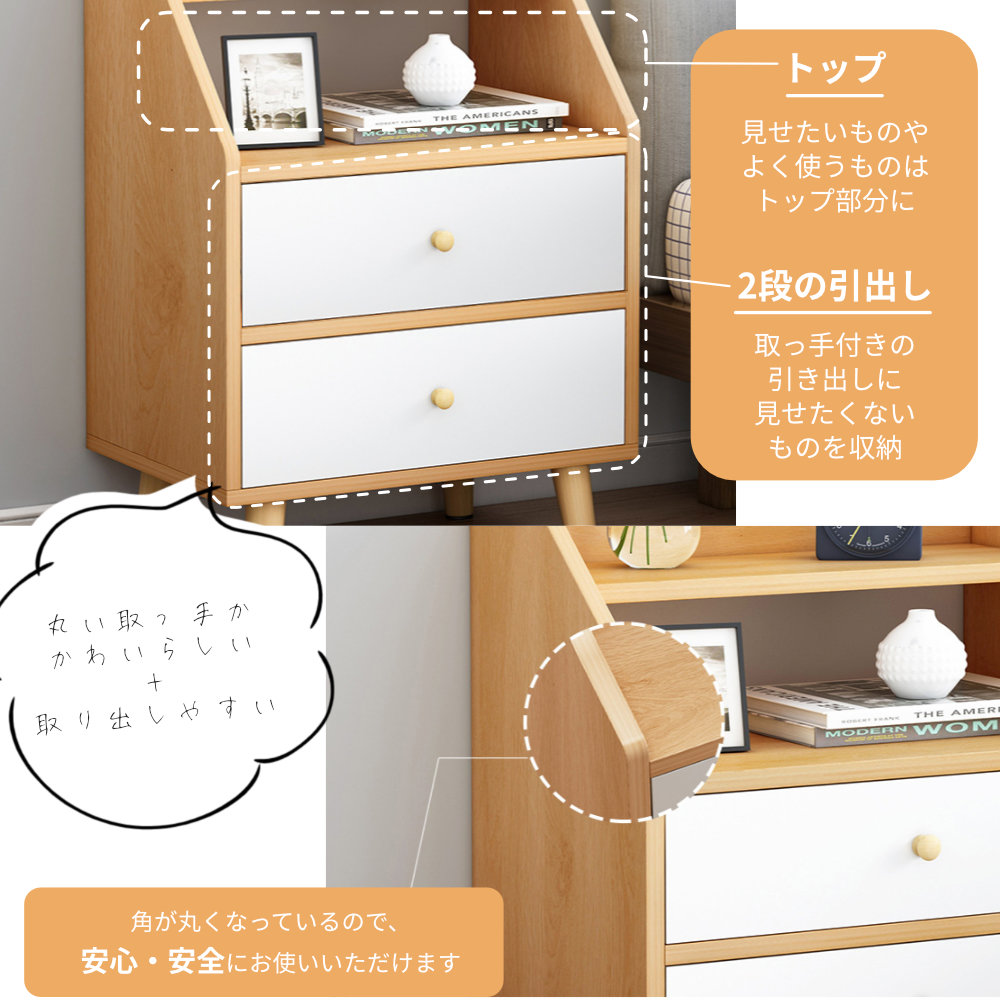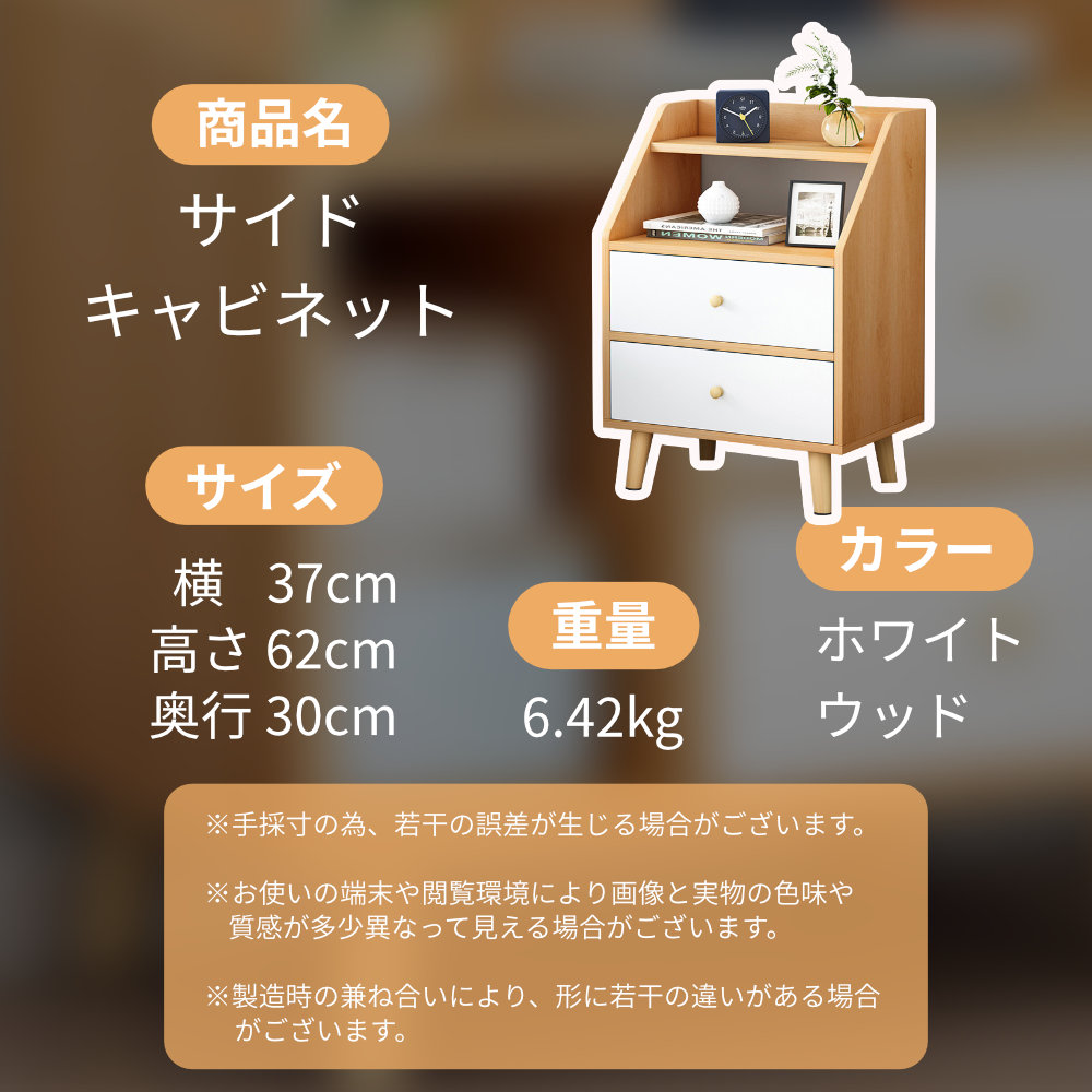キャビネット サイドキャビネット 収納キャビネット ベッドサイドキャビネット 北欧風 引き出し 収納棚 サイドボード 収納 おしゃれ 北欧 ナチュラル 白 省スペース 引き出し付き オープン収納棚 幅37cm 高さ62cm 奥行30cm 一人暮らし
