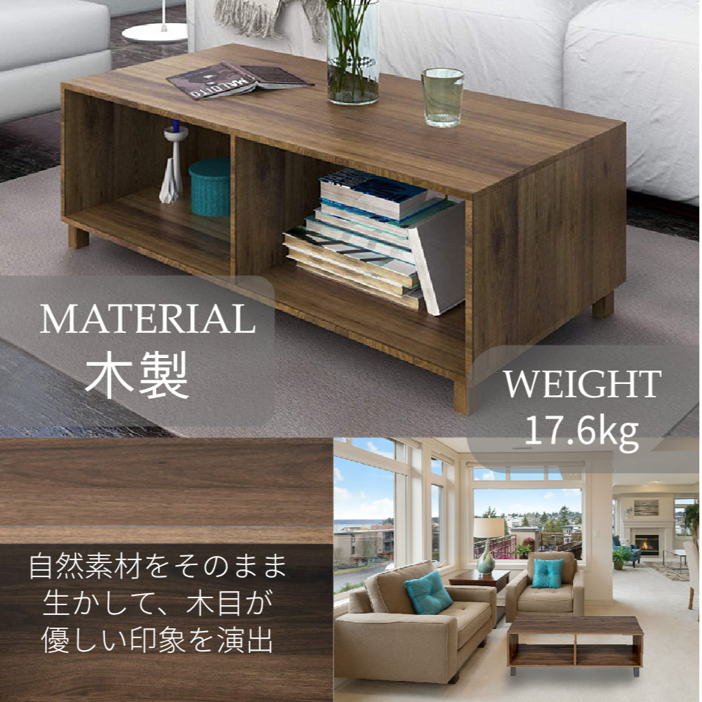 センターテーブル ローテーブル リビングテーブル テーブル シンプル モダン カフェ スタイリッシュ 収納付き 幅100cm 高さ35cm 奥行40cm オープン収納 木目調 おしゃれ インテリア オープン棚 一人暮らし 新生活 新居 クール