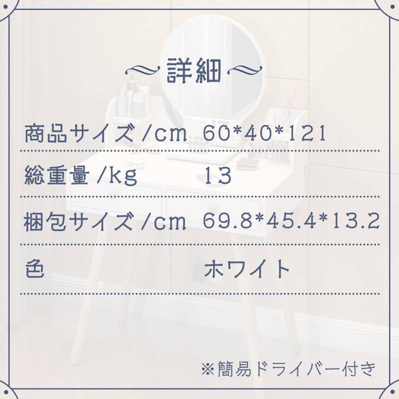ドレッサー 化粧台 鏡台 ドレッサーデスク おしゃれ 北欧風 上品 ドレッサーテーブル 引き出し付き 収納棚 丸型鏡 かわいい 高品質 機能性抜群 ナチュラル 幅60cm 奥行40cm 高さ121cm 収納付き アンティーク 小物入れ