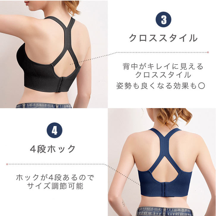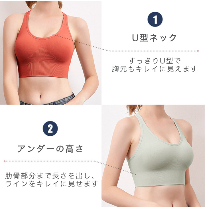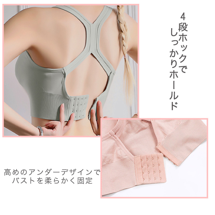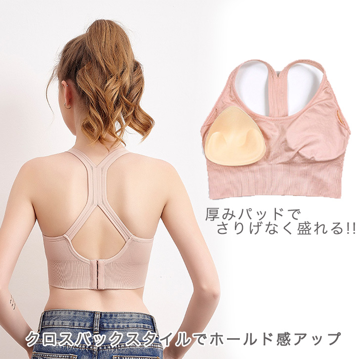 ブラトップ カップ付きブラトップ カップ付き ブラジャー ノンワイヤー ブラ スポーツブラ スポブラ バッククロス 盛れる 4段ホック Uネック ホールド 姿勢改善 カラー豊富 カラバリ豊富 カラーバリエーション